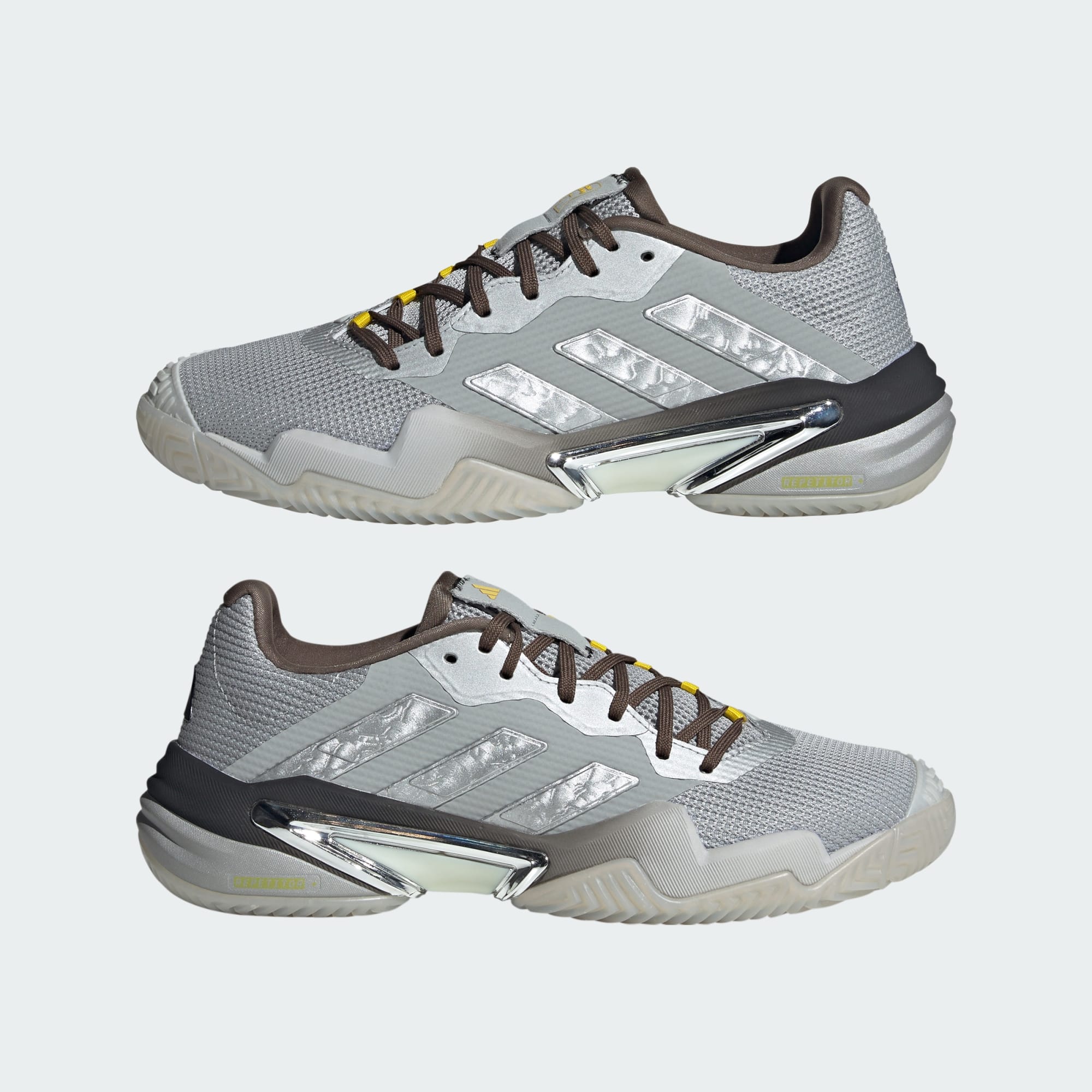Born to seize control of every point, these adidas Barricade 13 tennis shoes offer a solid platform on hard courts. The combination of a dual-density REPETITOR midsole, form-fitting Geofit collar and grippy Adiwear outsole supplies match-winning stability. A ventilating mesh upper ensures your focus never falters.