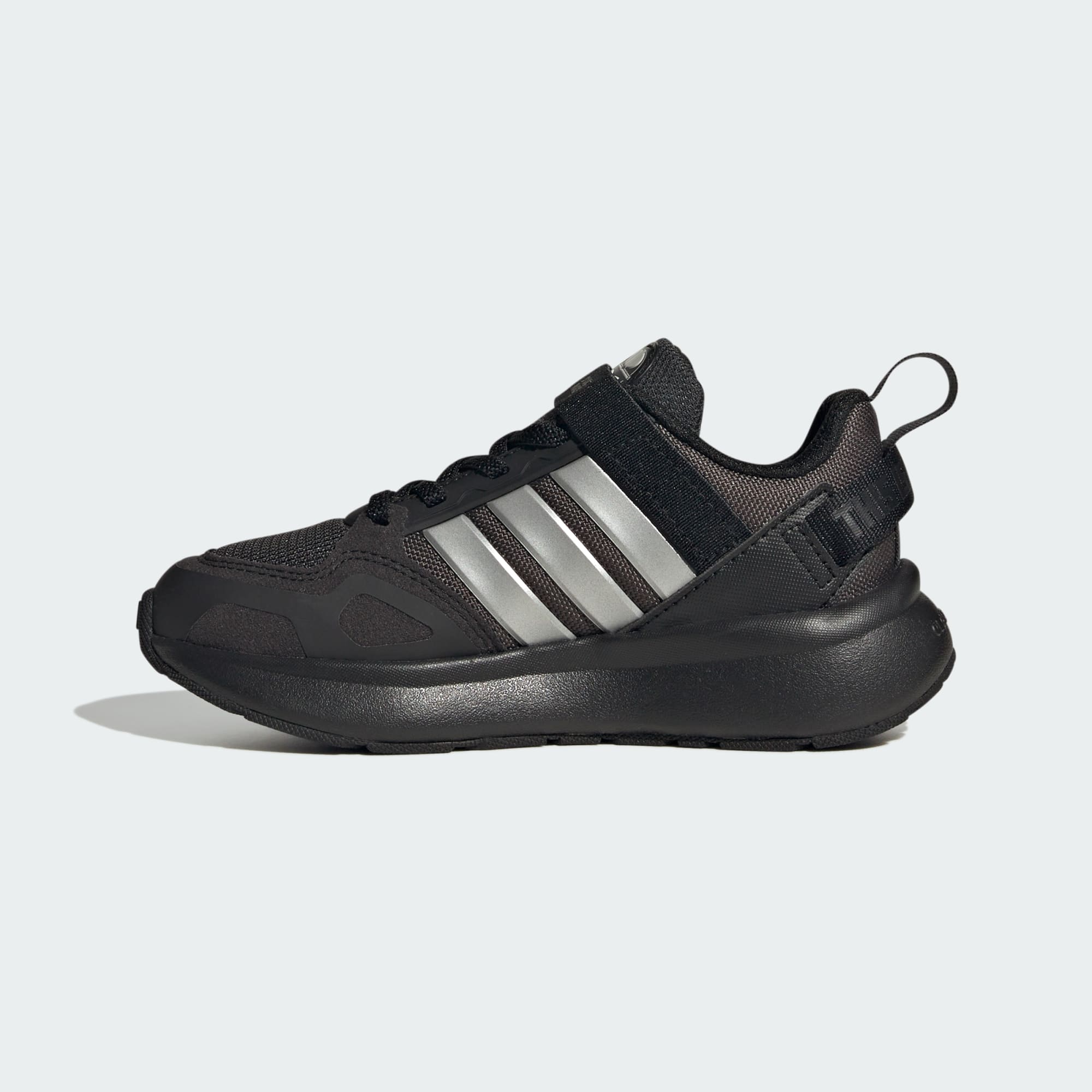 Tyto dětské boty adidas se inspirovaly seriálem The Mandalorian™. Dodají vaší ratolesti stylový vzhled. Elastické tkaničky a pásek na suchý zip usnadní přezouvání. Mezipodešev z EVA a gumová podešev ti zaručí pohodlí a přilnavost.