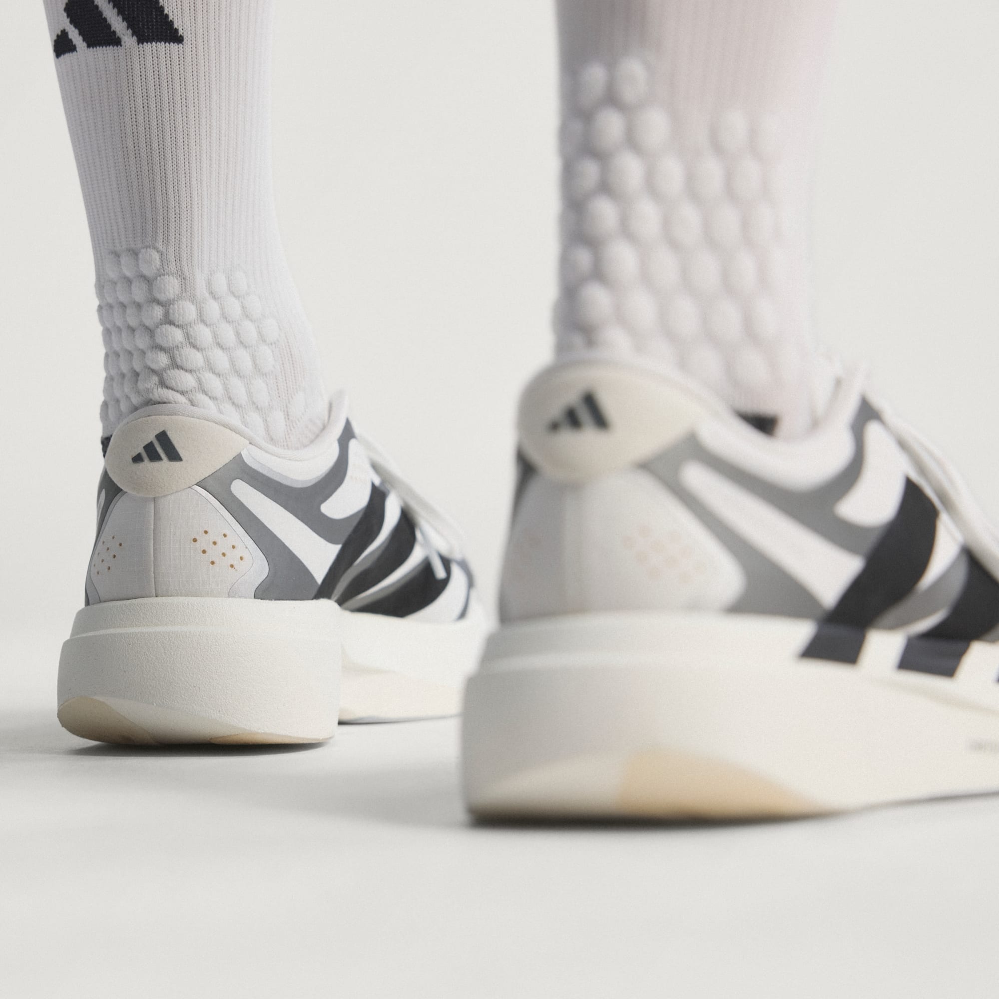 Lehkost a rychlost. Technologie LightstrikePro značky adidas poskytuje mimořádně lehké odpružení a zároveň návratnost energie pro maximální rychlost. Konstrukce inspirovaná závodním designem se pyšní nadrozměrnými 3 proužky a charakteristickým logem adidas.