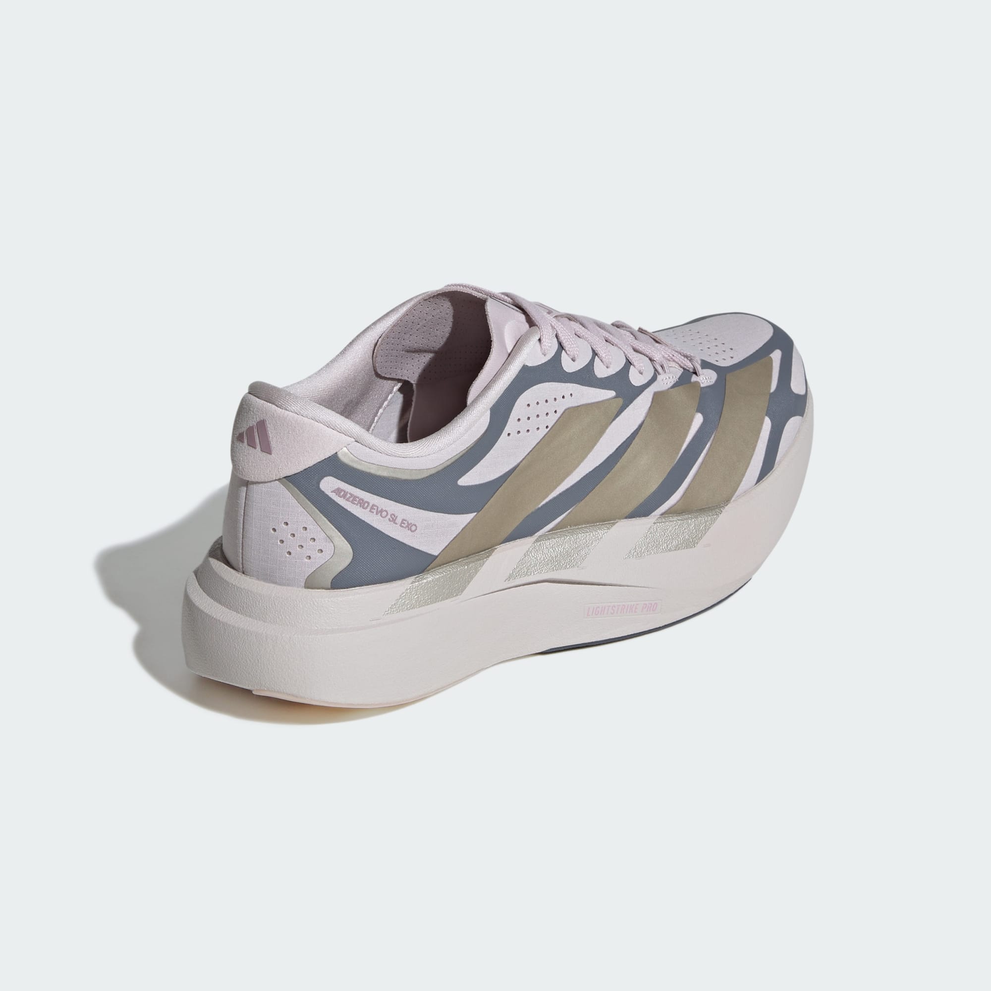 Pokud jde o běh, záleží na každém detailu. Tyto běžecké boty Adizero EVO SL EXO jsou navržené tak, aby běžcům umožnily posouvat jejich limity. Mají odpružení LightstrikePro, které ti dopřeje maximální pohodlí a zároveň tě nijak nezatíží.