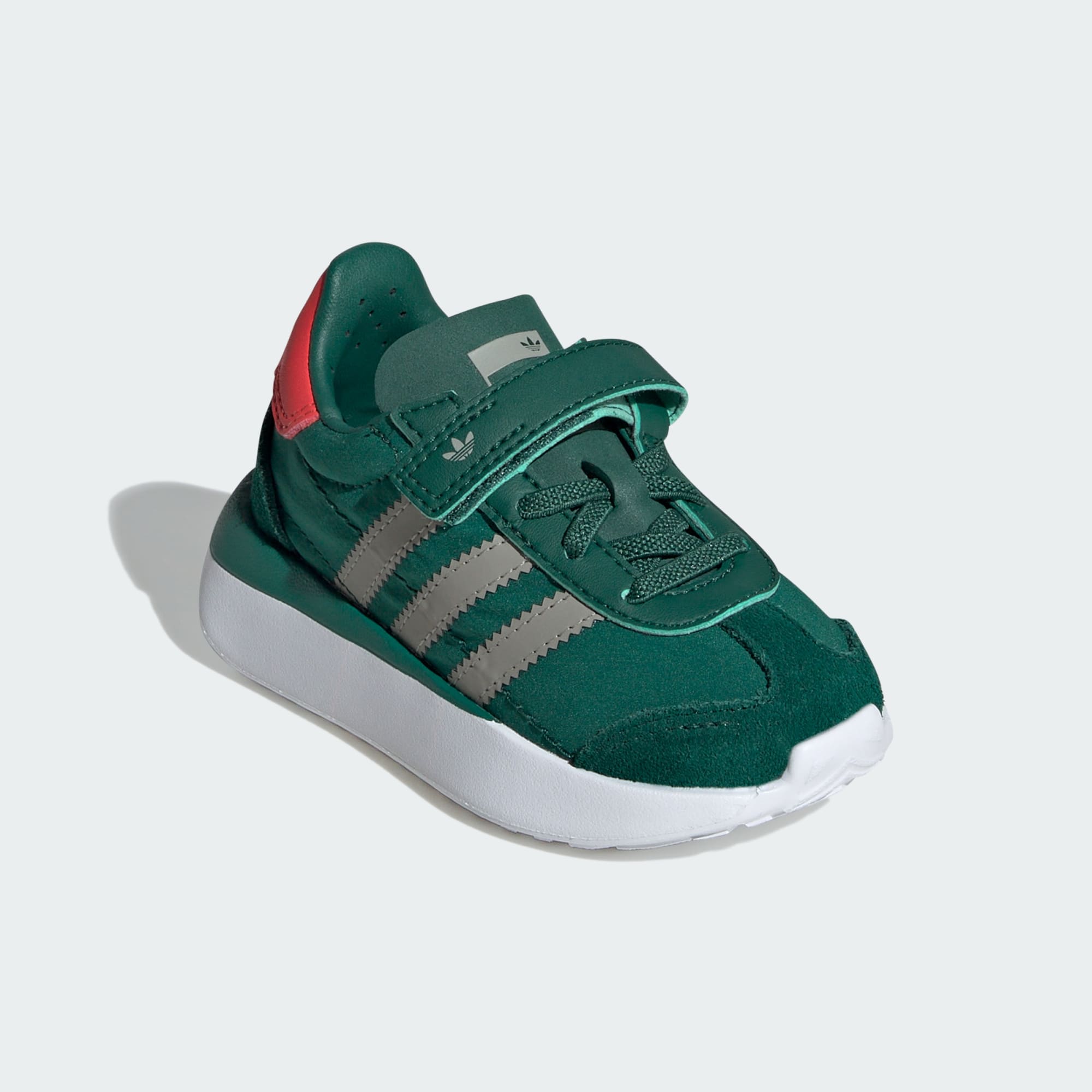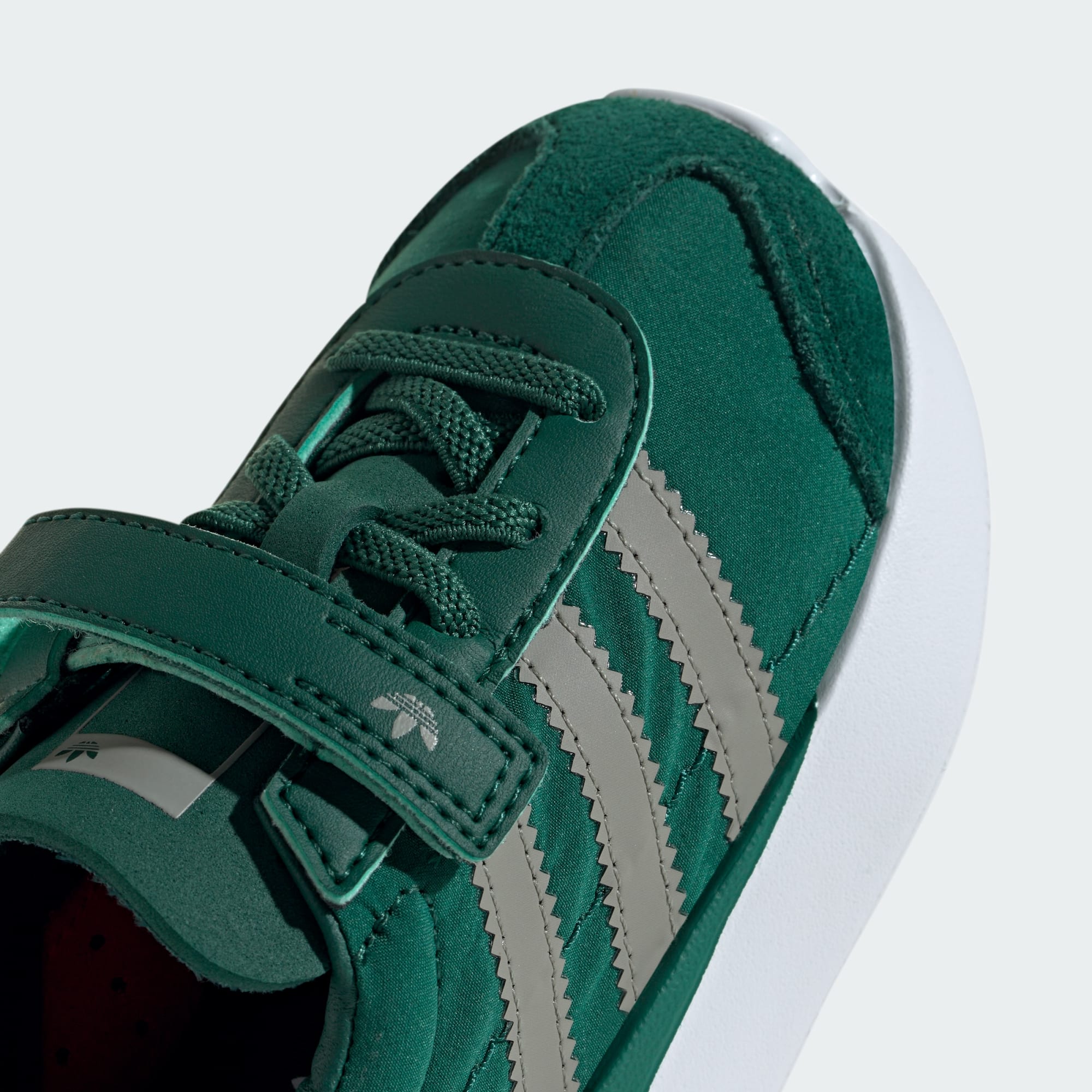 Tyto boty adidas se poprvé objevily v roce 1972. Jejich lehká konstrukce způsobila revoluci v běžeckém odvětví. Dnes se tyto boty inspirovaly retro modely a dodají dětem stylový vzhled. Pásky na suchý zip usnadní přezouvání. Hladký kožený svršek a syntetická podšívka ti zaručí celodenní pohodlí. Syntetická podešev zaručí malým nožkám optimální stabilitu. Tyto boty udrží krok s aktivními dětmi, ať už se chystají do parku, na zahradu, nebo vyřizují své povinnosti.