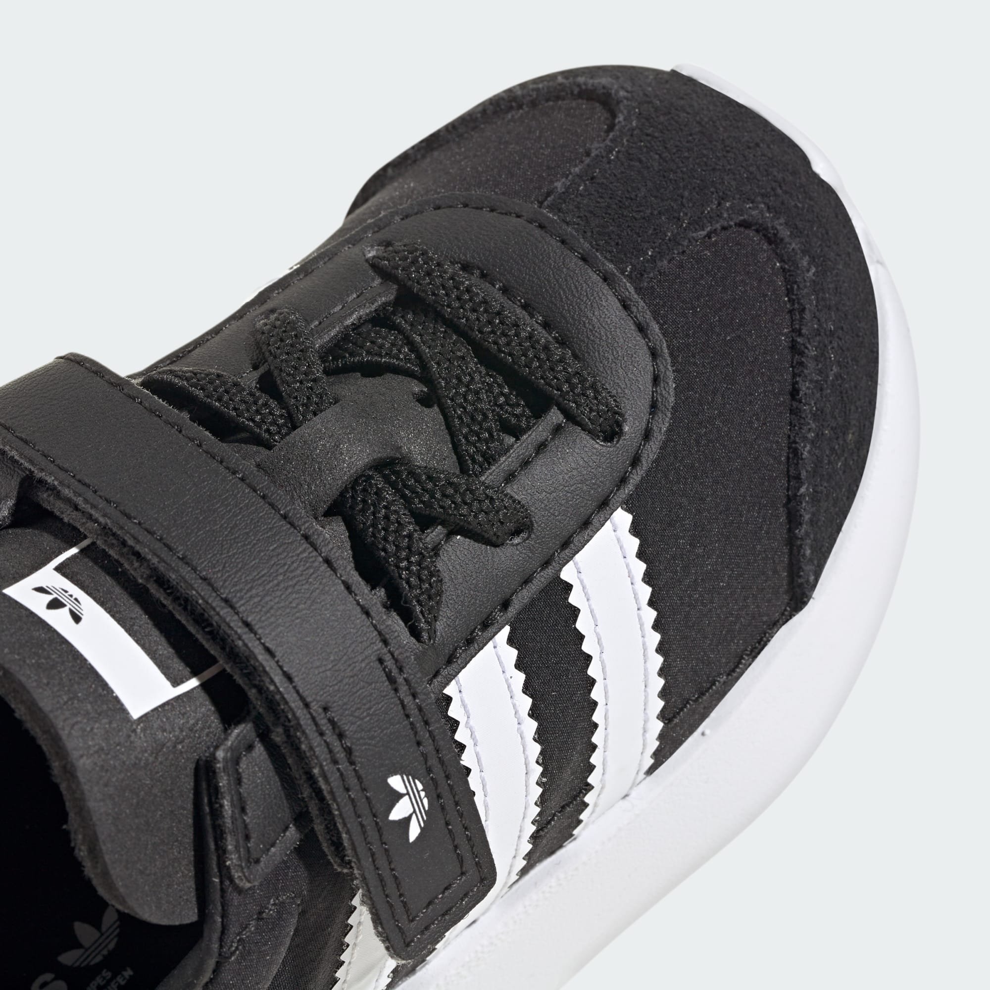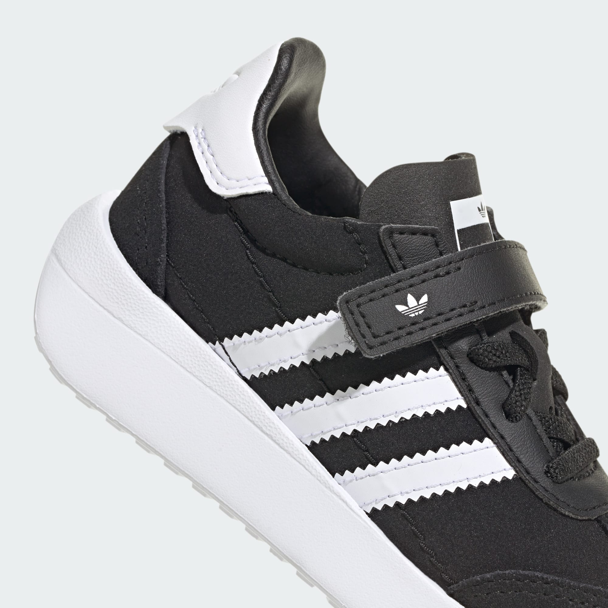 Tyto boty adidas se poprvé objevily v roce 1972. Jejich lehká konstrukce způsobila revoluci v běžeckém odvětví. Dnes se tyto boty inspirovaly retro modely a dodají dětem stylový vzhled. Pásky na suchý zip usnadní přezouvání. Hladký kožený svršek a syntetická podšívka ti zaručí celodenní pohodlí. Syntetická podešev zaručí malým nožkám optimální stabilitu. Tyto boty udrží krok s aktivními dětmi, ať už se chystají do parku, na zahradu, nebo vyřizují své povinnosti.