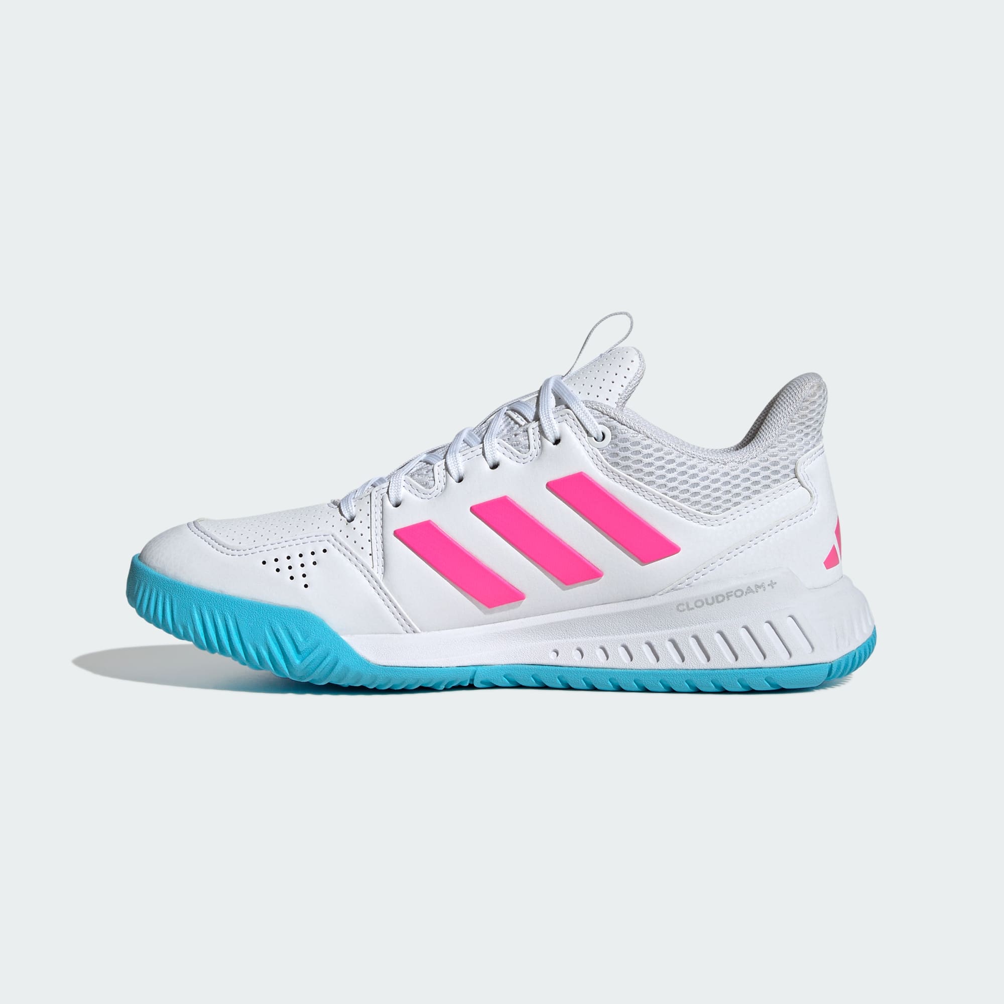 Sleduj, jak tvoje výkony v hale dosahují v těchto botách adidas Court Flight nových výšin. Jejich měkký síťovaný svršek obepíná nohu a pevně ji drží na místě. Mezipodešev Bounce, umístěná na přilnavé gumové podešvi, ti na tvrdém a rovném povrchu zajistí odpružení a pohodlí.