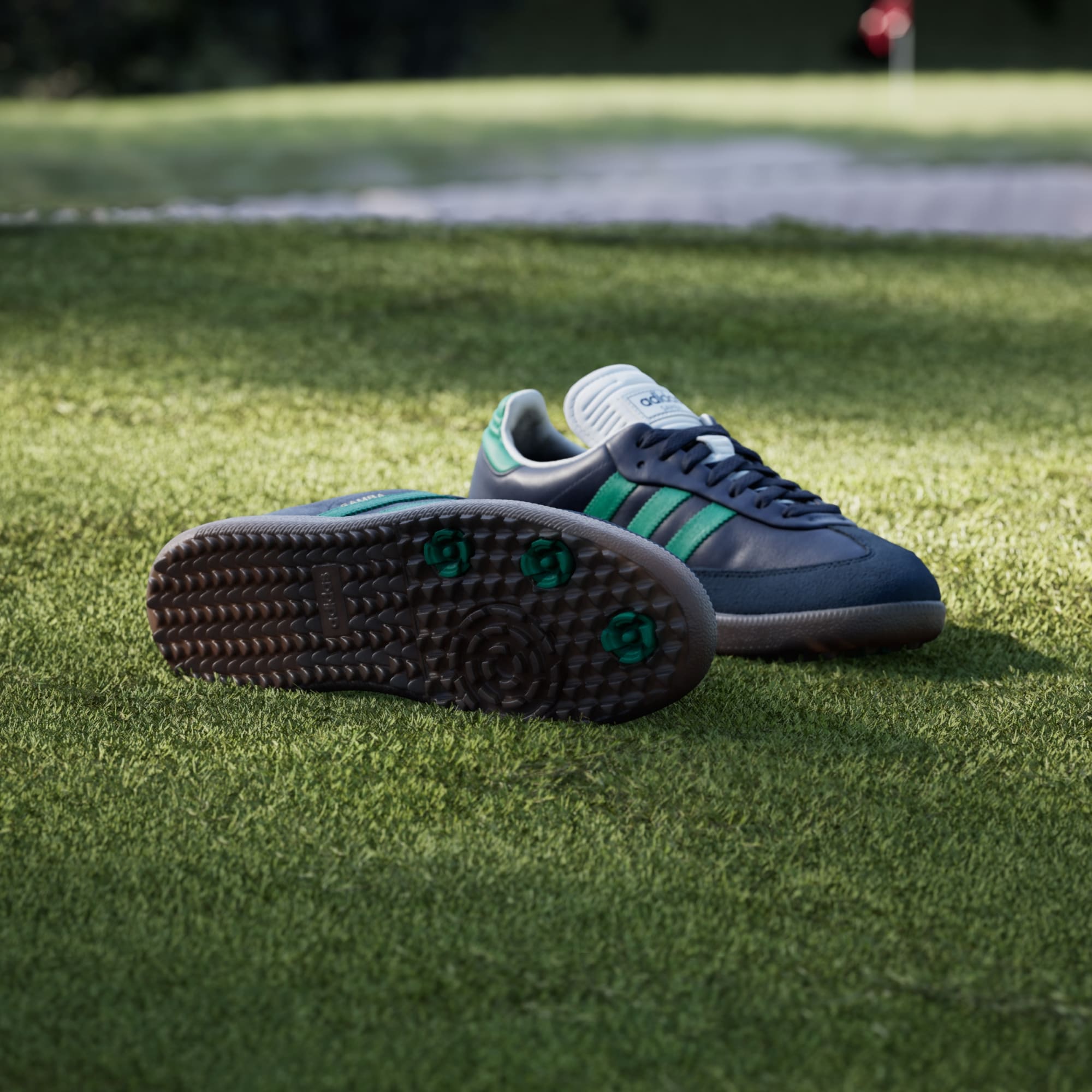 Tyto golfové boty adidas Samba bez spiků ti dodají stylový vzhled. Tyto boty zachovávají tradiční vzhled původního modelu, včetně semišových detailů na koženém svršku a kultovní špičky ve tvaru T. Odpružená mezipodešev a gumová podešev ti na greenu zaručí spolehlivou přilnavost a dopřejí ti pohodlí.