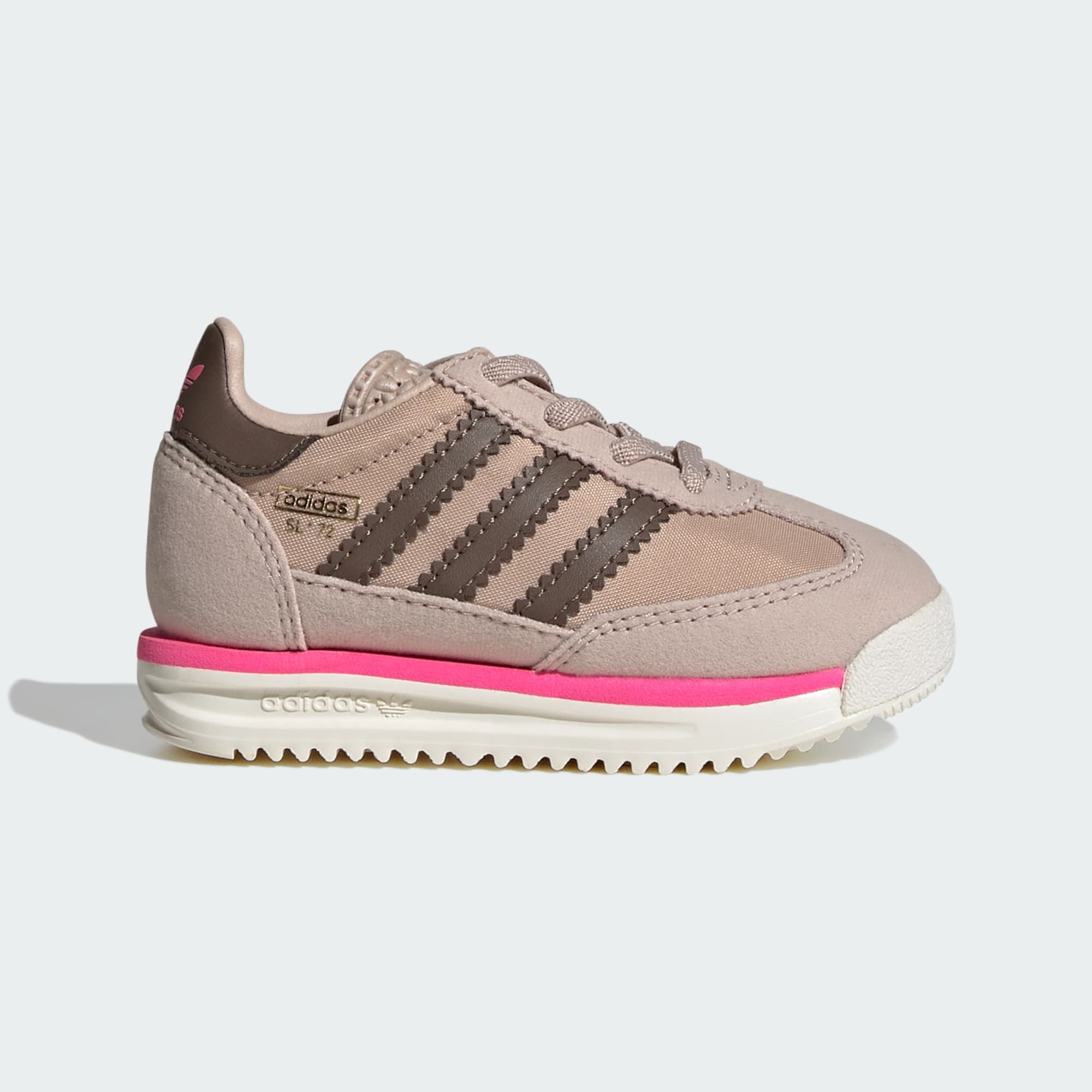 Tyto boty adidas pro nemluvňata vzdávají hold běžeckému modelu ze 70. let. Nylonový svršek se semišovým krytím odkazuje na původní model. Mezipodešev z EVA ti poskytne potřebné zpevnění při prvních dobrodružstvích. Díky elastickým tkaničkám se boty snadno přezouvají. Odolná gumová podešev obstojí i při náročných dobrodružstvích.