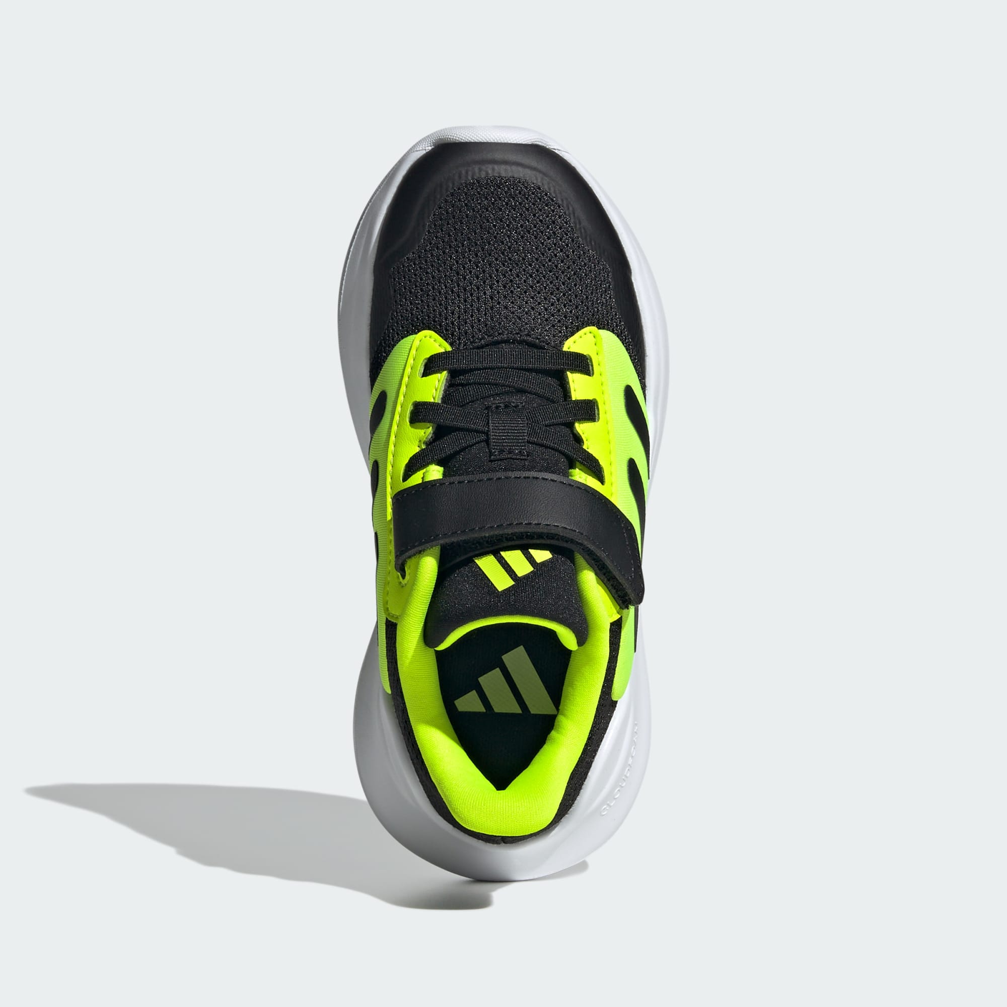 rovný střih šněrování na tkaničky, horní pásek na suchý zip svršek ze síťoviny textilní podšívka kombinovaná mezipodešev EVA a podešev obsahuje nejméně 20 % recyklovaných materiálů Kód barvy: Core Black / Core Black / Lucid Lemon Kód produktu: JR6069 Tragekomfort