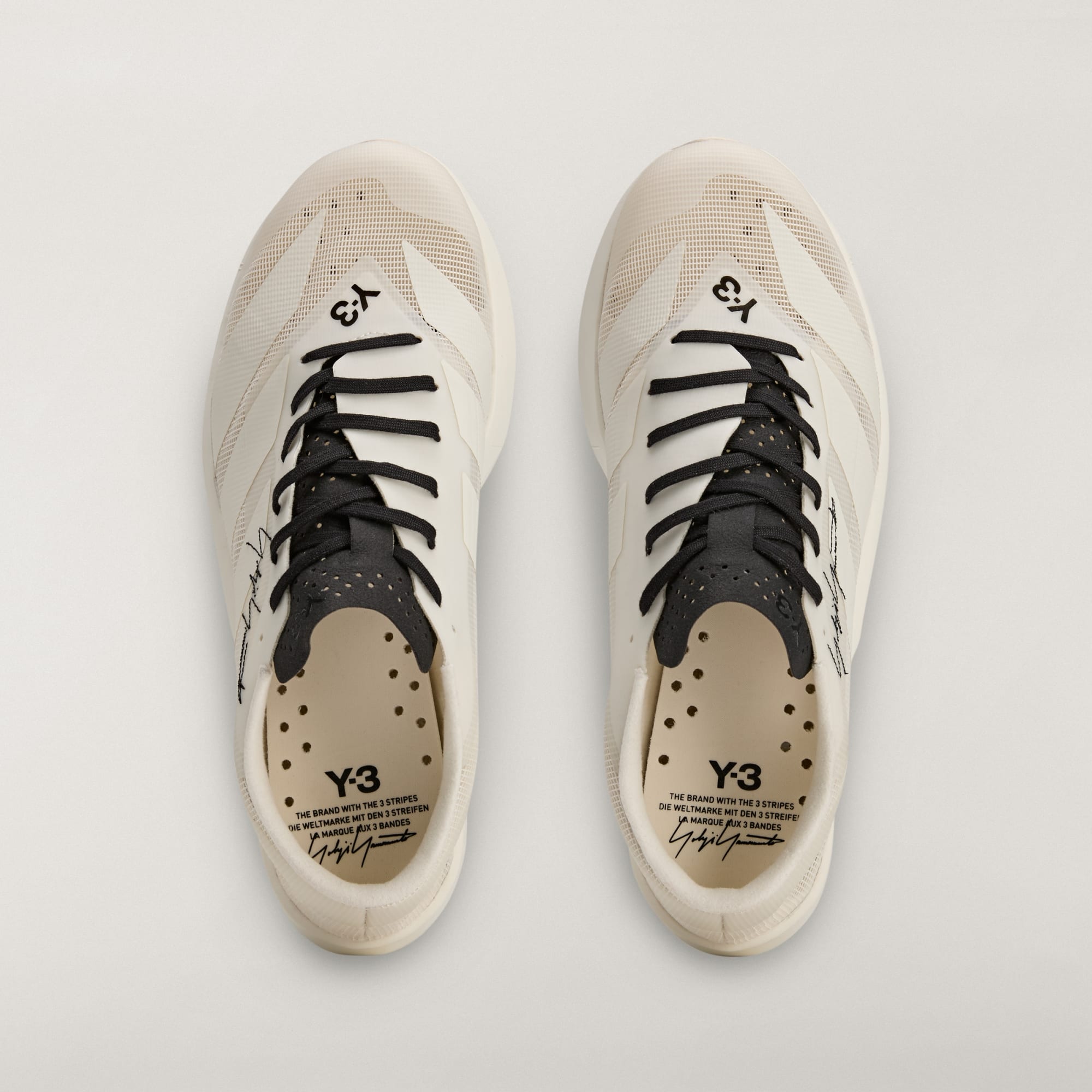Vyšívaný podpis Yohji Yamamota a logo Y-3 na nártu jsou výrazným projevem stylu a autenticity.