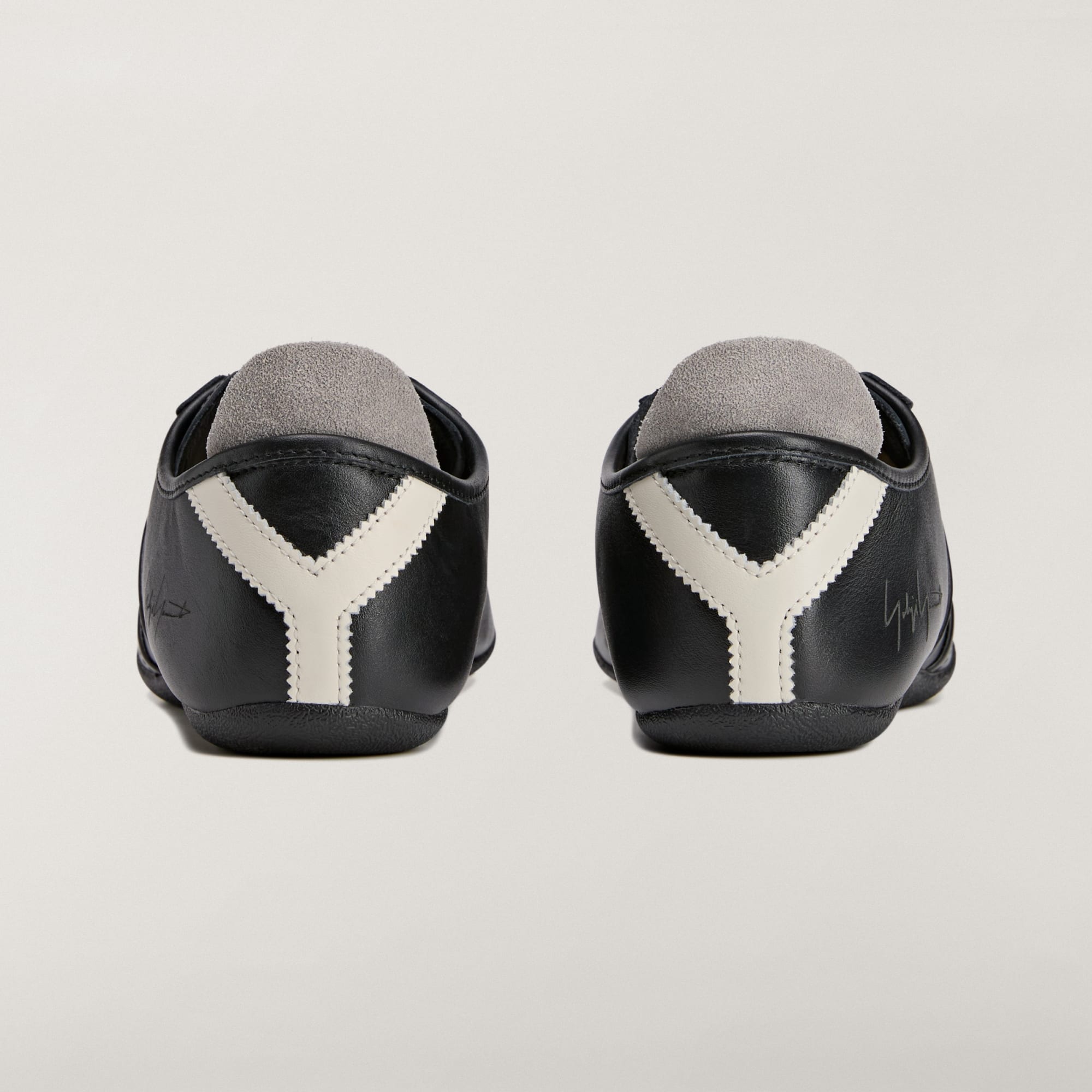Celkový vzhled dotváří 3 proužky, reliéfní logo Y-3, tištěný podpis Yohji Yamamota a tvar písmene Y na opatku, který odkazuje na partnerství značek adidas a Y-3.
