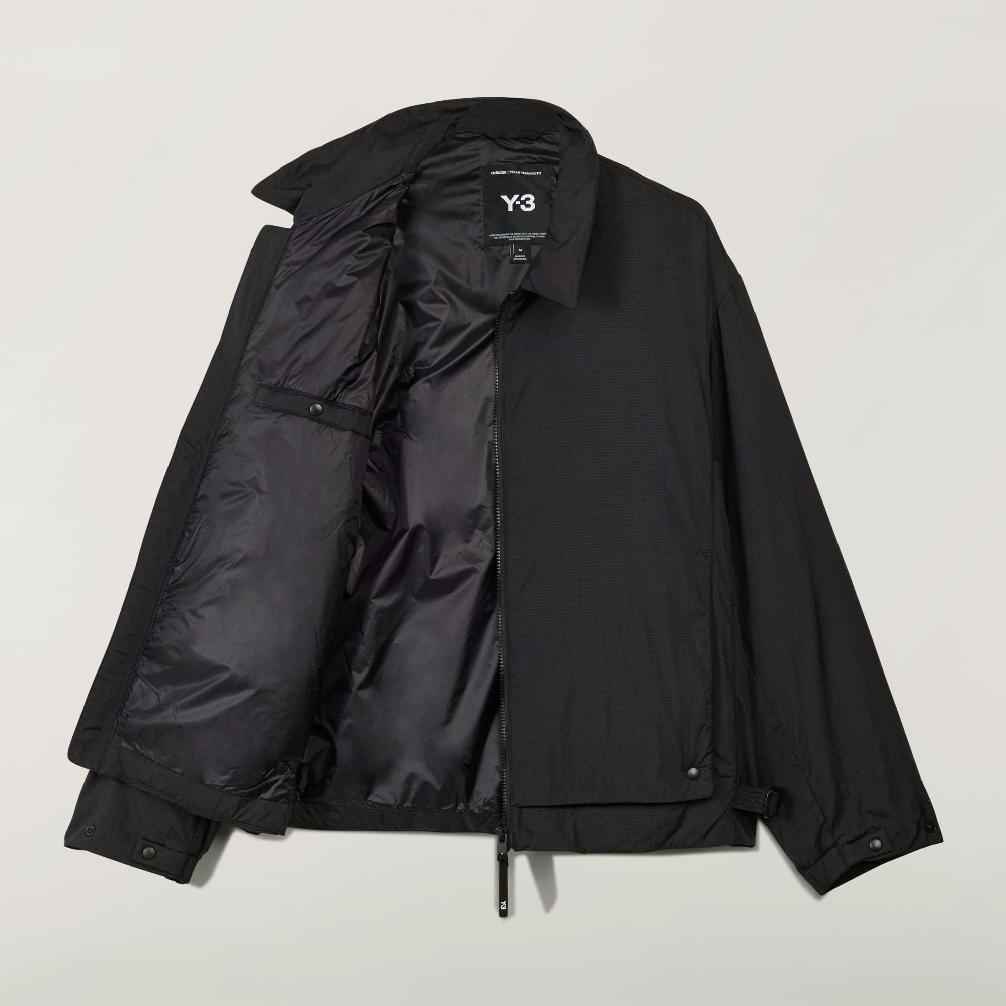 Bunda s prošívanou podšívkou Y-3 je vyrobena z ripstopového materiálu Pertex® a je polstrovaná zateplením PrimaLoft® s technologií Cross Core. Má střih blusonu s kapsami na patentky skrytými pod klopou předního panelu pro bezešvý vzhled.