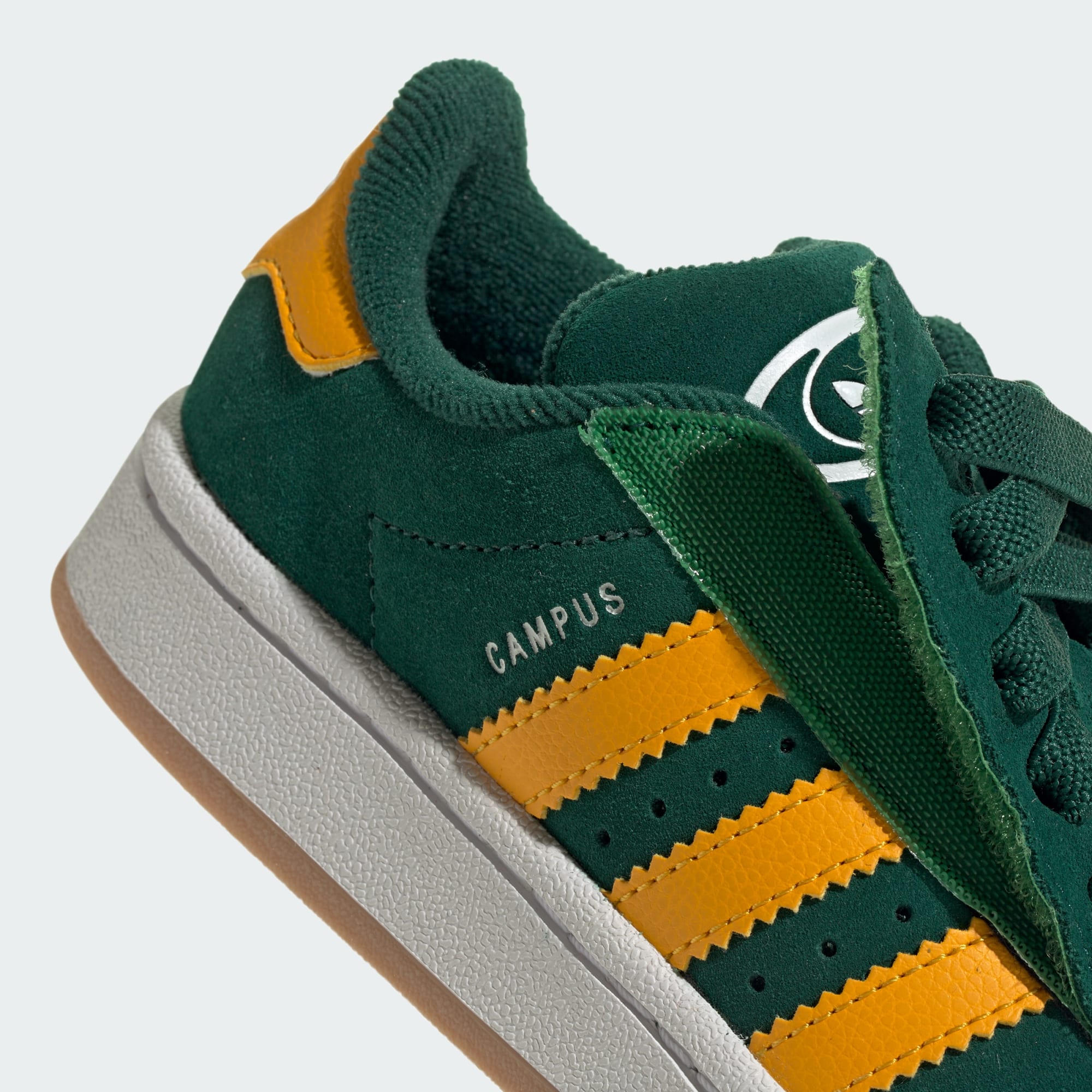 Tyto dětské boty adidas, inspirované ikonickým vzhledem, který je tu již desítky let, jsou zaměřené na ležérní styl. Kožený svršek je zvýrazněný koženými 3 proužky a minimálním stehováním, což je jeden z charakteristických znaků modelu Campus. Elastické tkaničky a řemínek na háček a poutko usnadňují nazouvání a vyzouvání, takže vaše dítě nikdy nemusí zpomalit.