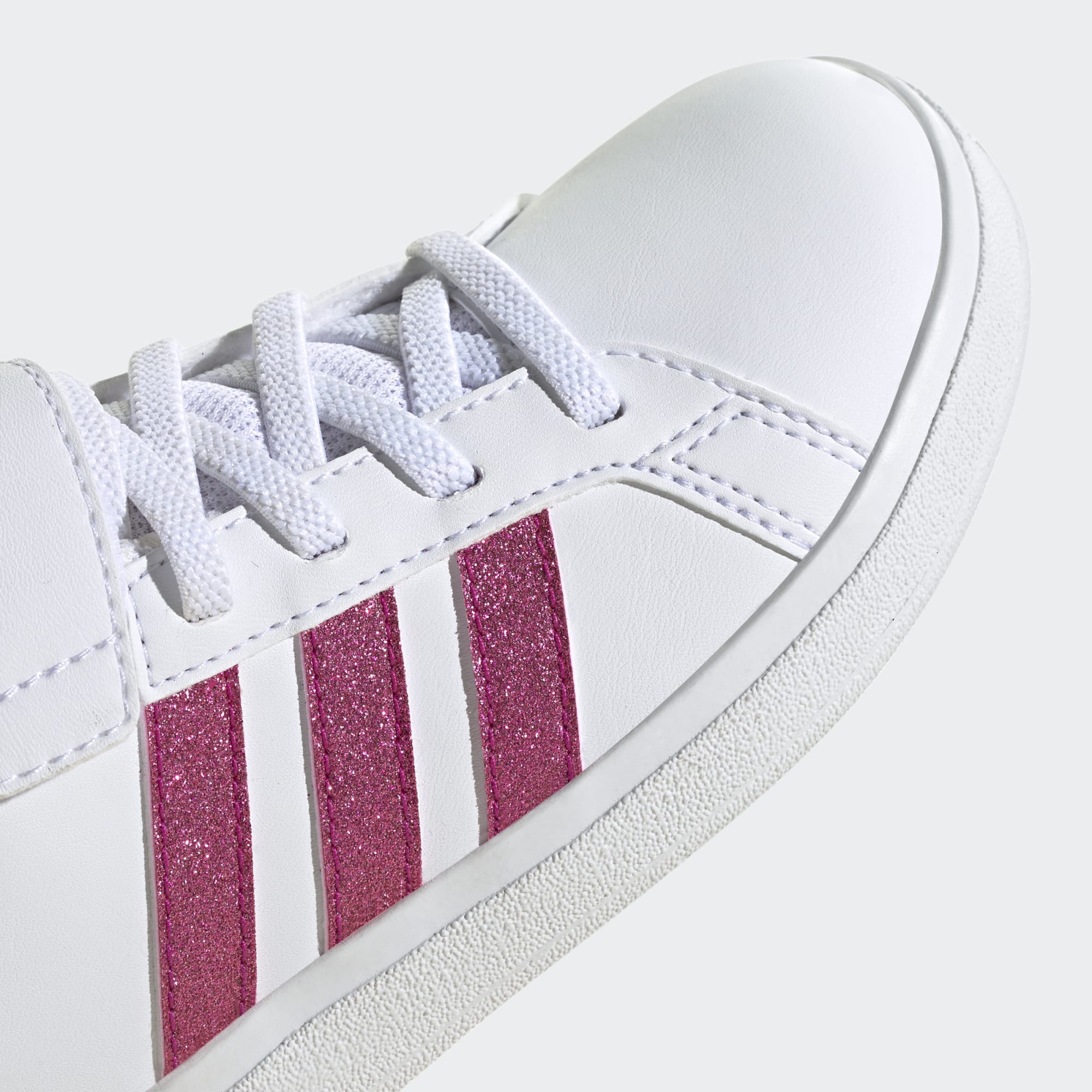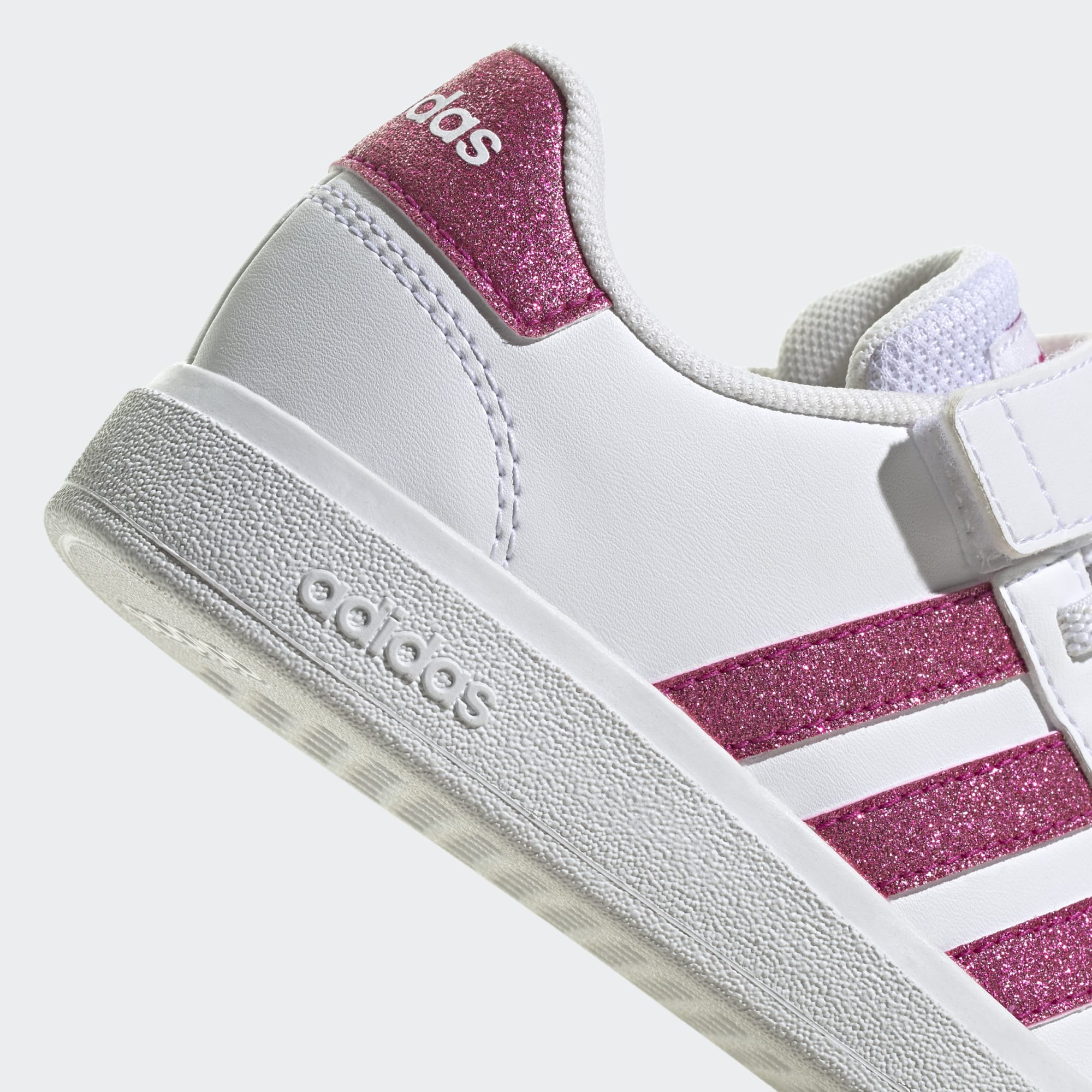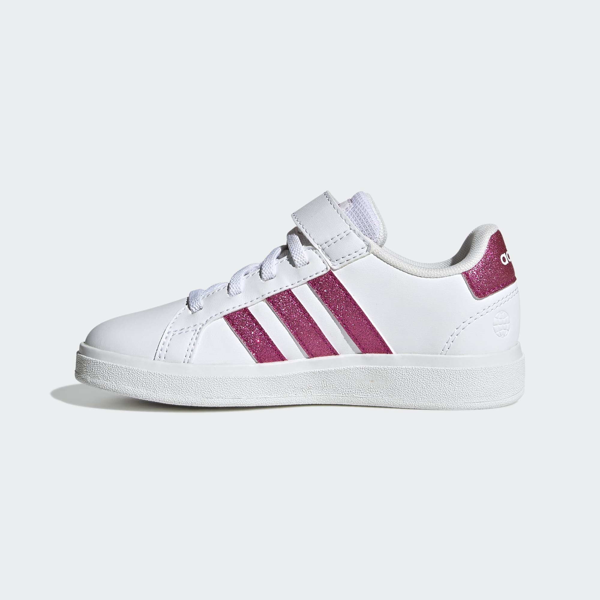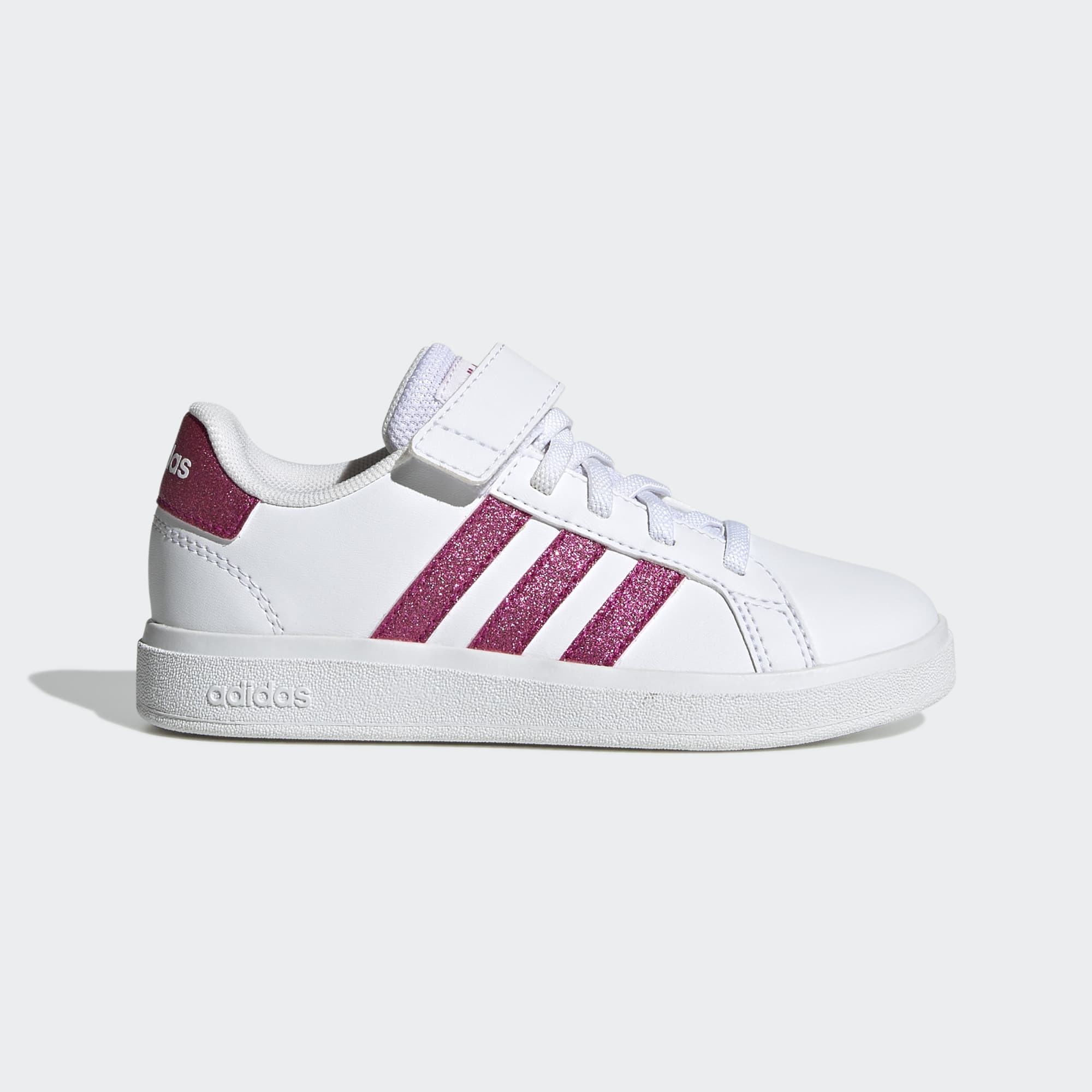 I malé děti mohou patřit mezi nadšené sběratele tenisek. Tyto dětské boty adidas Grand Court budou jejich prvním velkým úlovkem. Odolná a pružná gumová podešev jim poskytne nezbytnou oporu při všech hrách. Tyto klasické tenisky se v botníku nikdy dlouho neohřejí. Díky natahovacím elastickým tkaničkám a kotníkovému pásku na suchý zip se totiž snadno přezouvají.