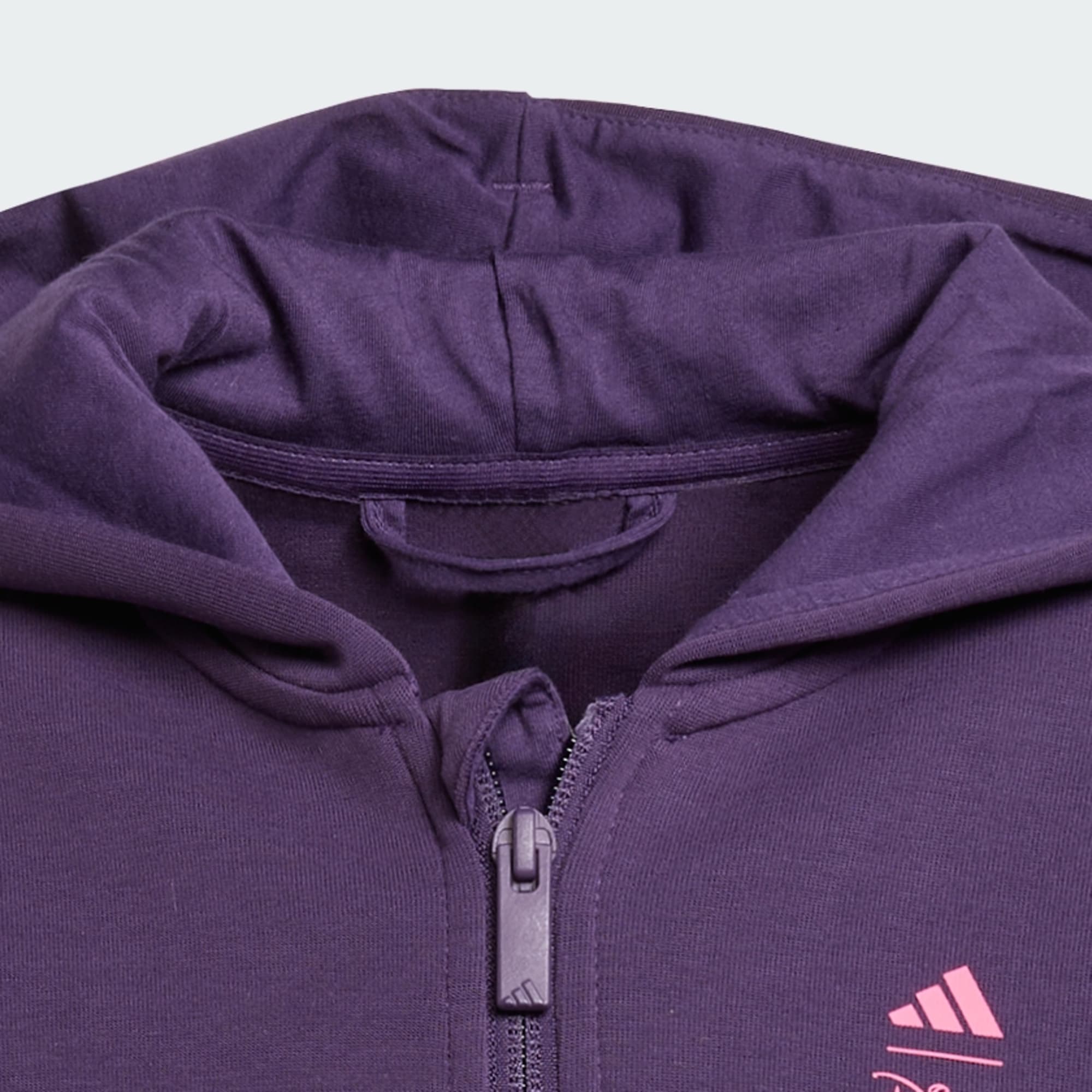 Kouzlo tohoto sportovního topu adidas Disney si děti zamilují. Sportovní, dívčí konstrukci z měkkého, příjemného materiálu s velkou kapucí, zipem vpředu a velkou zábavnou grafikou Disney na zádech doplňují 3 proužky adidas přes spodní část rukávů.