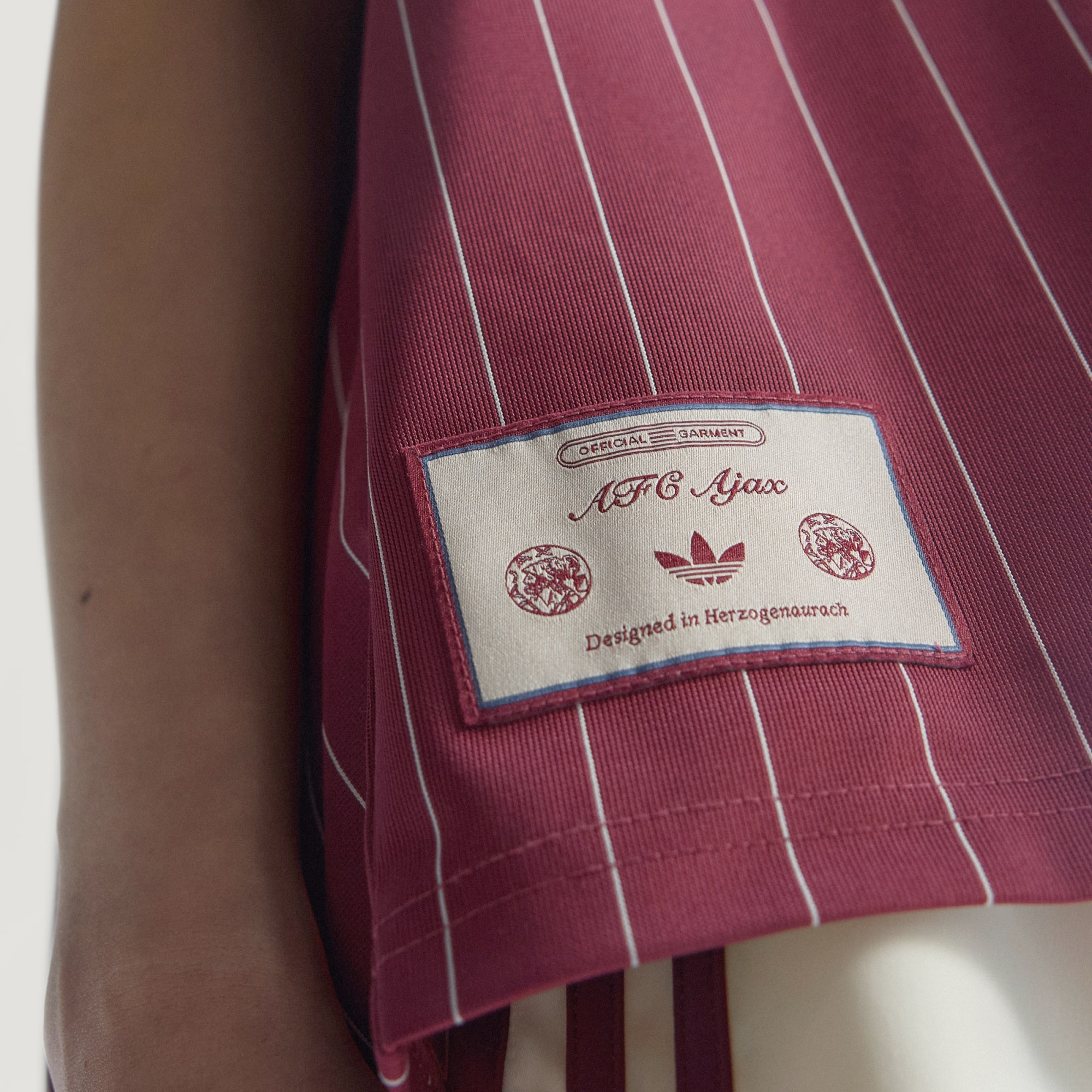 Proužkovaný dres Ajax Amsterdam, který oslavuje fotbalovou historii.