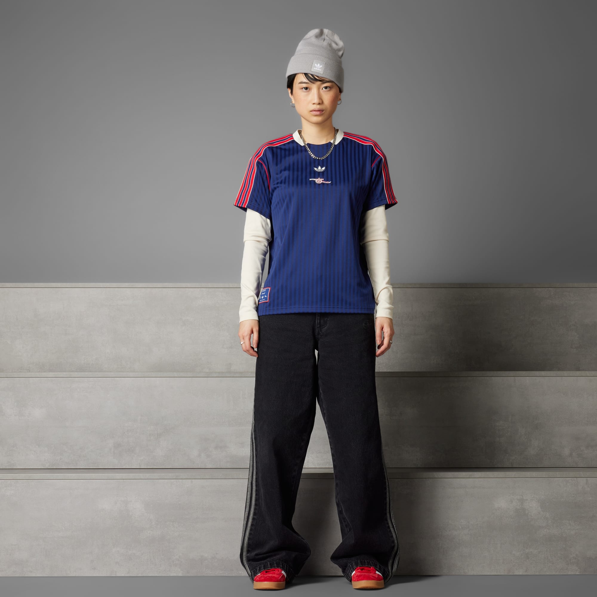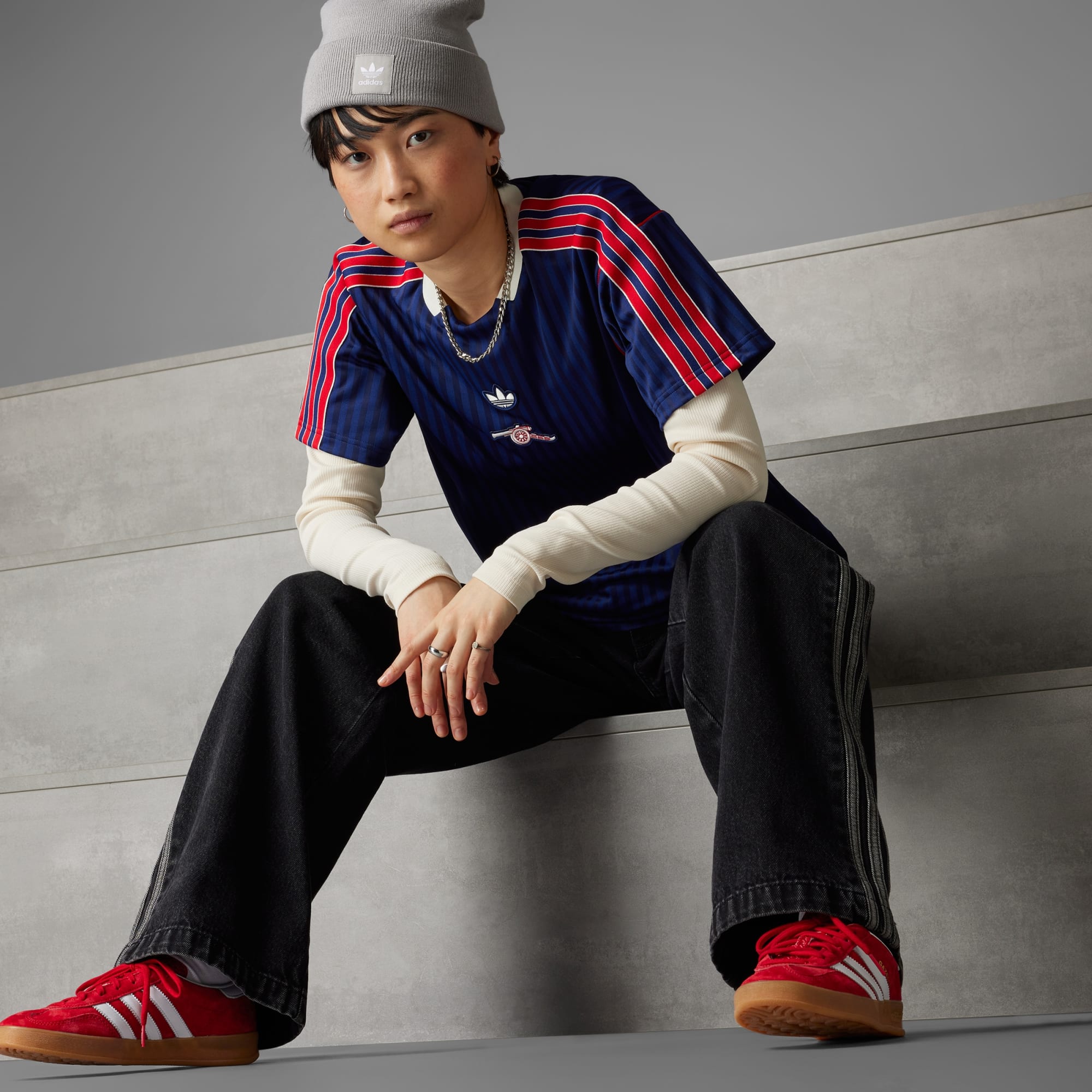 Všeho nech! Ikony 80. let se vrací! Nový dres Arsenal Terrace Icons ti dodá stylový vzhled a zároveň všem ukáže, komu fandíš. Tuto soupravu inspirovanou fotbalovými modely z 80. let zdobí retro znak s kanónem a kultovní trojlístek adidas. Zkombinuj ji třeba s džínami a botami Gazelle.