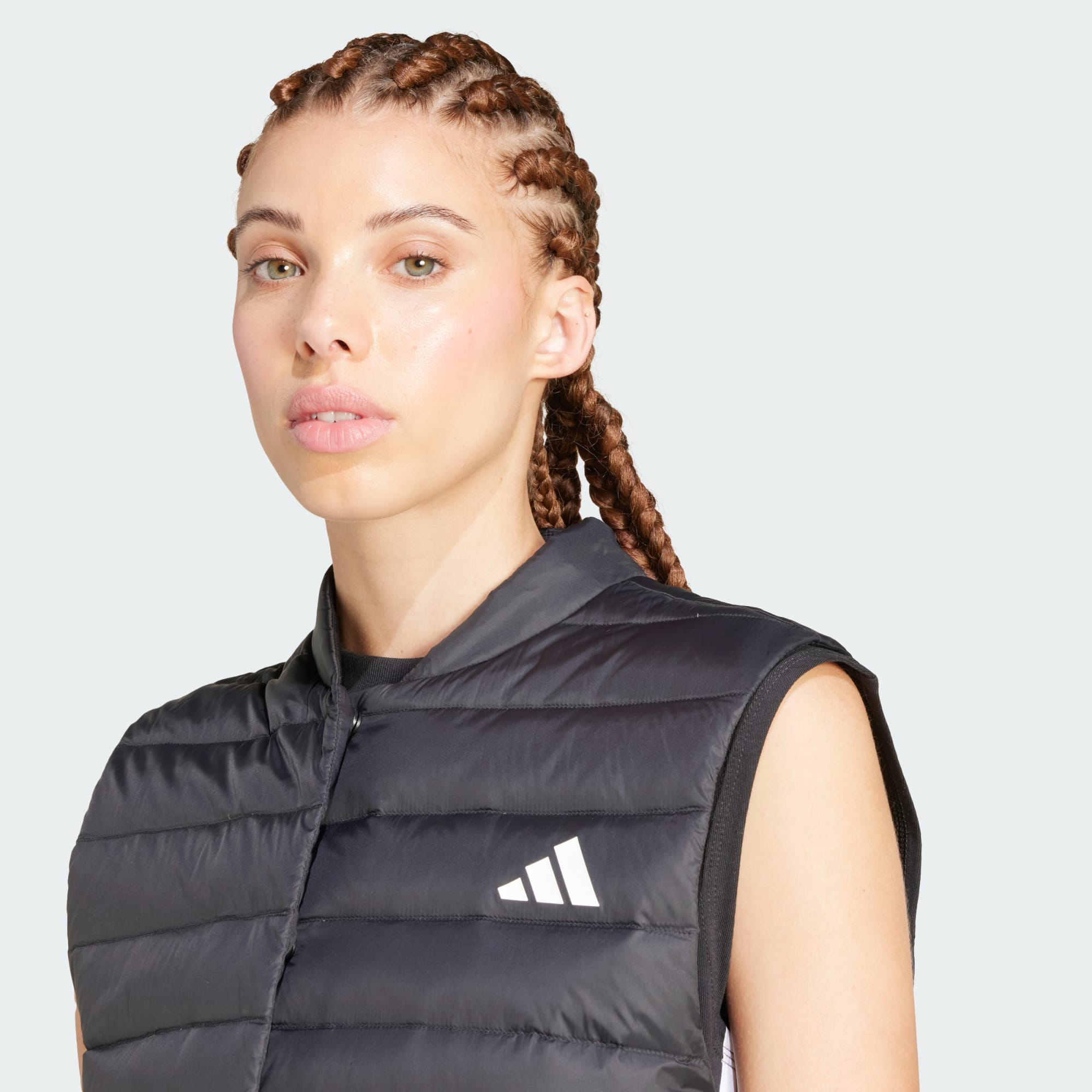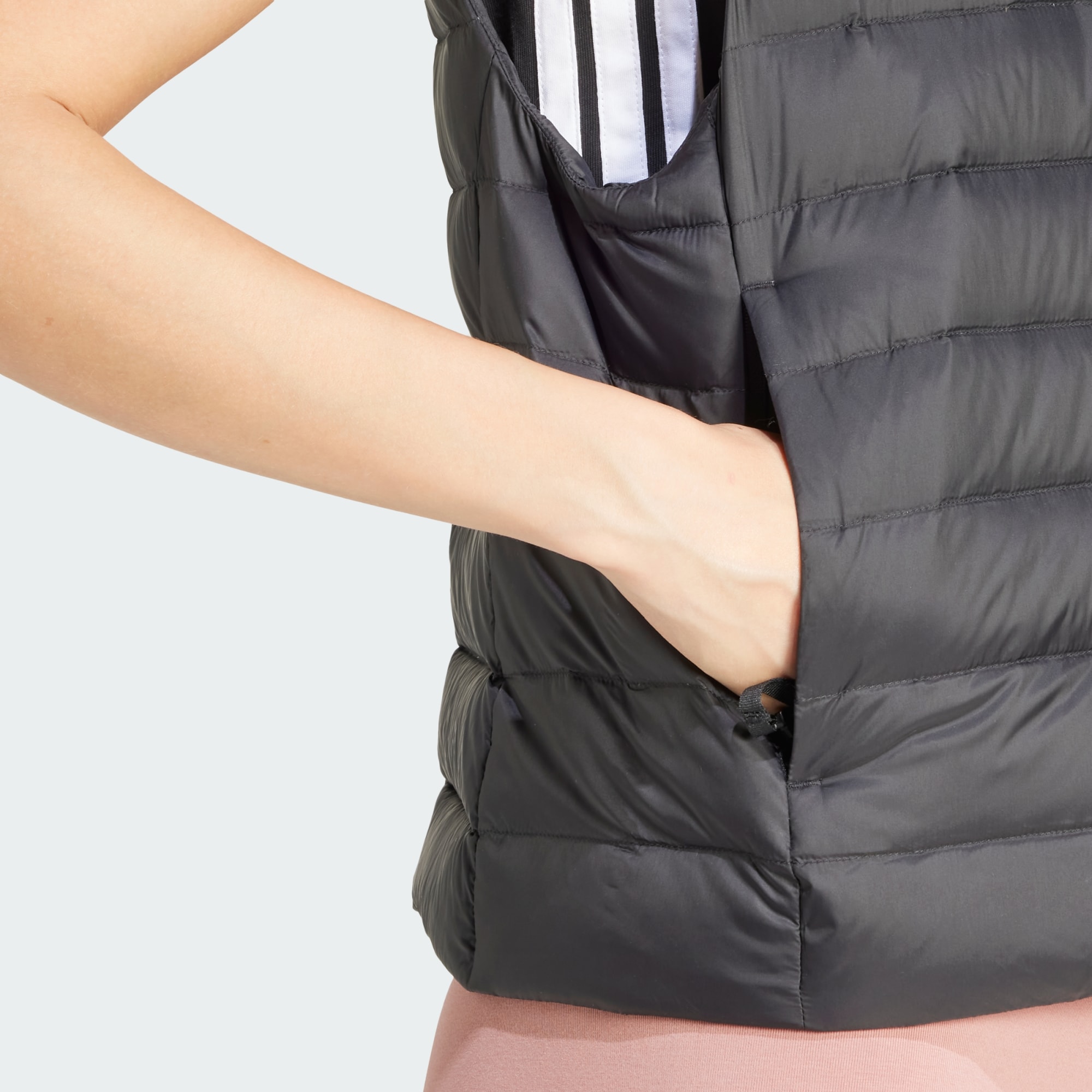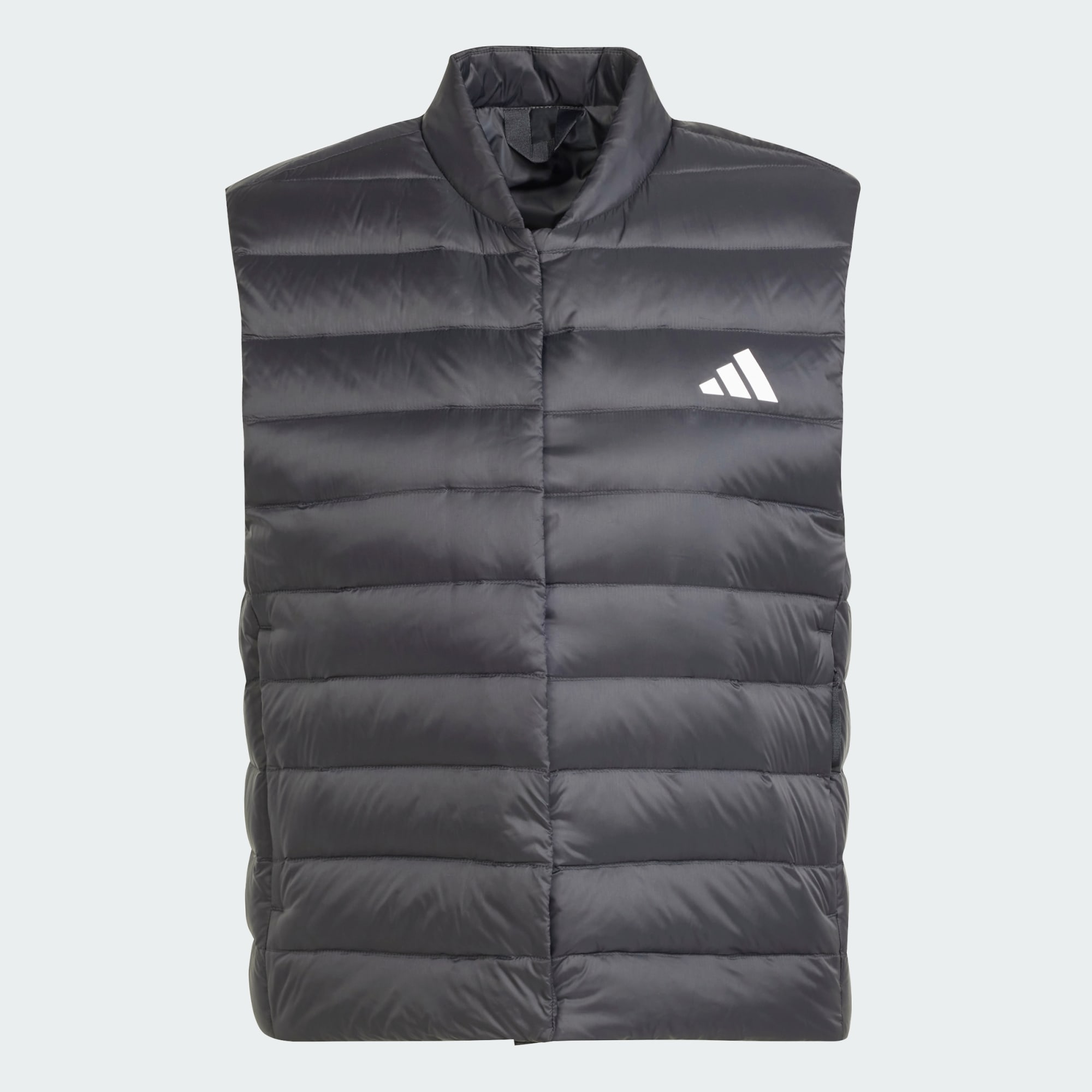 This adidas vest is insulated with down to keep your core warm without weighing you down. A water-repellent finish helps keep you dry in a drizzle. Zip pockets provide secure storage for your phone and keys, and the vest packs into its own pocket for easy storage when you're on the go. This product is made with 100% recycled materials. By reusing materials that have already been created, we help to reduce waste and our reliance on finite resources and reduce the footprint of the products we make.