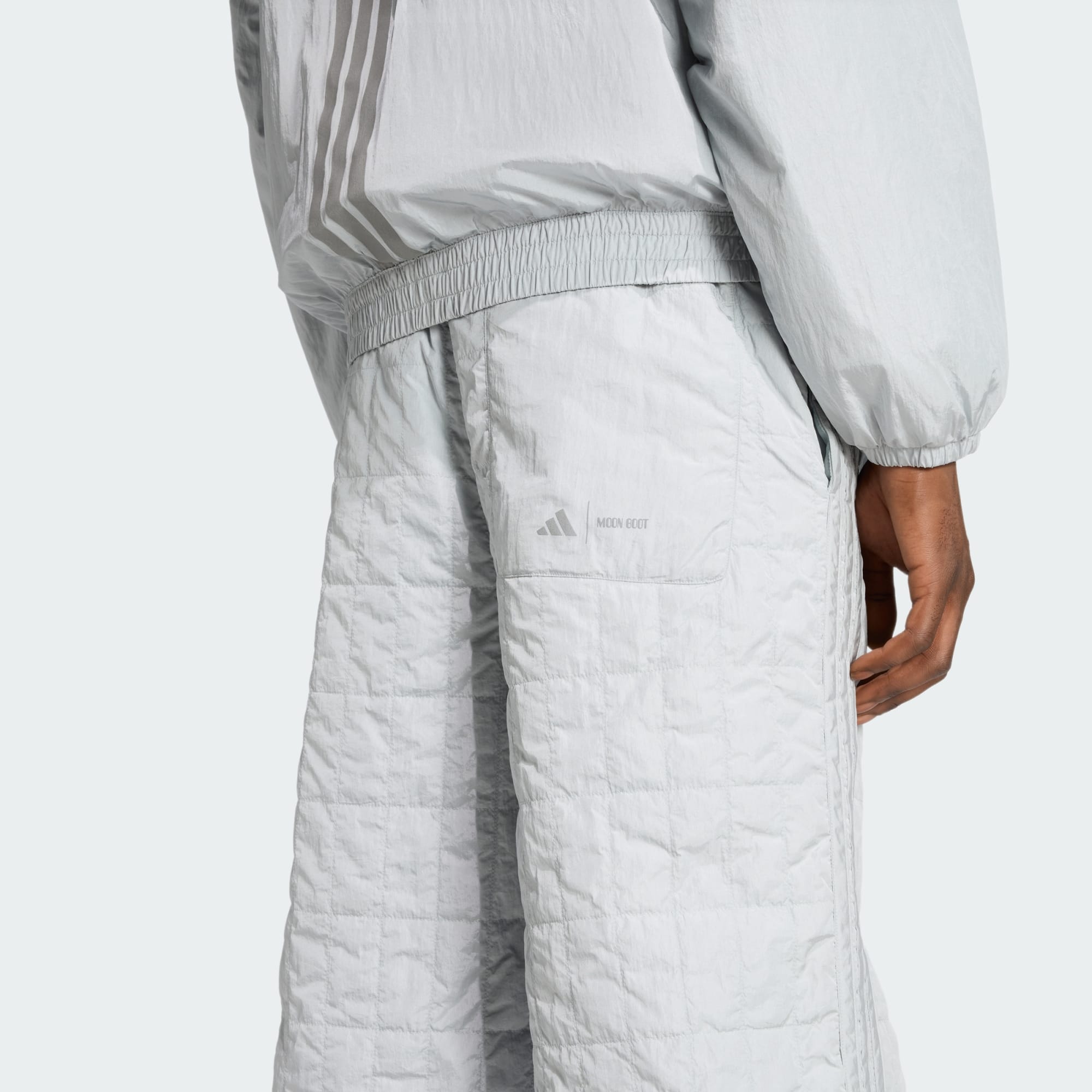 Kalhoty adidas x MOON BOOT Padded jsou ztělesněním stylu a pohodlí. Kalhoty jsou navržené pro sebevědomé dobrodruhy, kteří se zimy nezaleknou. V rámci naší ikonické kolaborace s Moon Boot přinášejí autentickou esenci „Mountain to Street“ do tvého městského outfitu. Kalhoty jsou ušité z úpletu s jednoduchou vazbou a mají volný střih, který umožňuje snadný pohyb a vrstvení. Polstrovaná konstrukce zajišťuje teplo i pohodlí, díky čemuž jsou tyto kalhoty ideální volbou jak pro horská dobrodružství, tak pro městské objevování. Lesklé detaily dodávají kalhotám jemnou reflexivitu a vytvářejí tak dokonalý základ pro skutečně výjimečný outfit. Ať už míříš na svah nebo do města, tyto kalhoty budou tvou jistotou, pokud jde o styl i funkčnost.