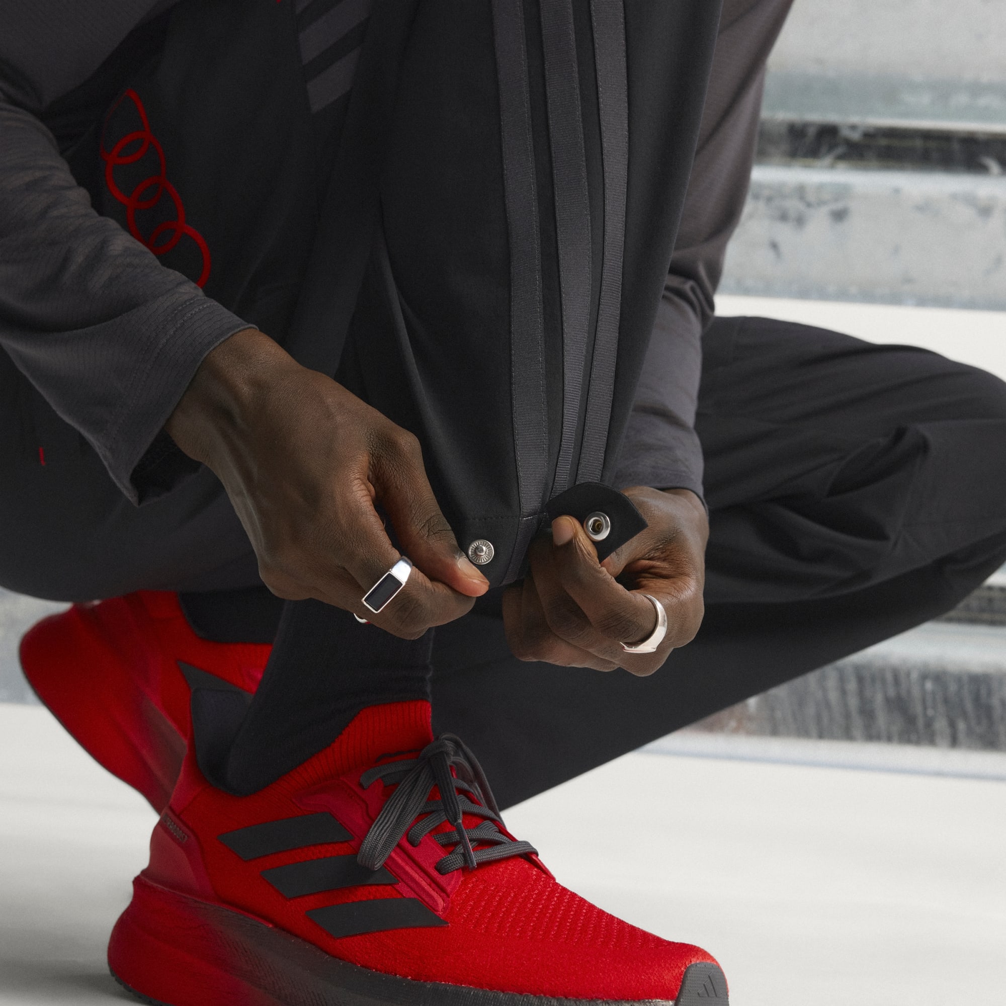V pit stopu je rozhodující přesnost. Kalhoty Audi Formula One Team Mechanics jsou navržené pro ty, kteří vyžadují dokonalost. Plně elastický pas zaručí, že kalhoty skvěle padnou. Jsou vyrobené z odolného materiálu a mají ochranu kolen. Jsou flexibilní a pohodlné a při práci tě nijak nebudou omezovat v pohybu. Díky volnému střihu jsou ideální pro dlouhé dny v garáži. S výraznou vyšívanou značkou Terrex máš zaručeno, že tě nikdo nepřehlédne. Několik kapes poskytuje dostatek úložného prostoru pro nářadí a ostatní nezbytné věci. Ať už opravuješ motory, nebo měníš pneumatiky, tyto praktické kalhoty ti pomohou dosáhnout maximálního výkonu, aniž by tě omezovaly v pohybu. Ukaž svou lásku k motorsportu s adidas a Audi.