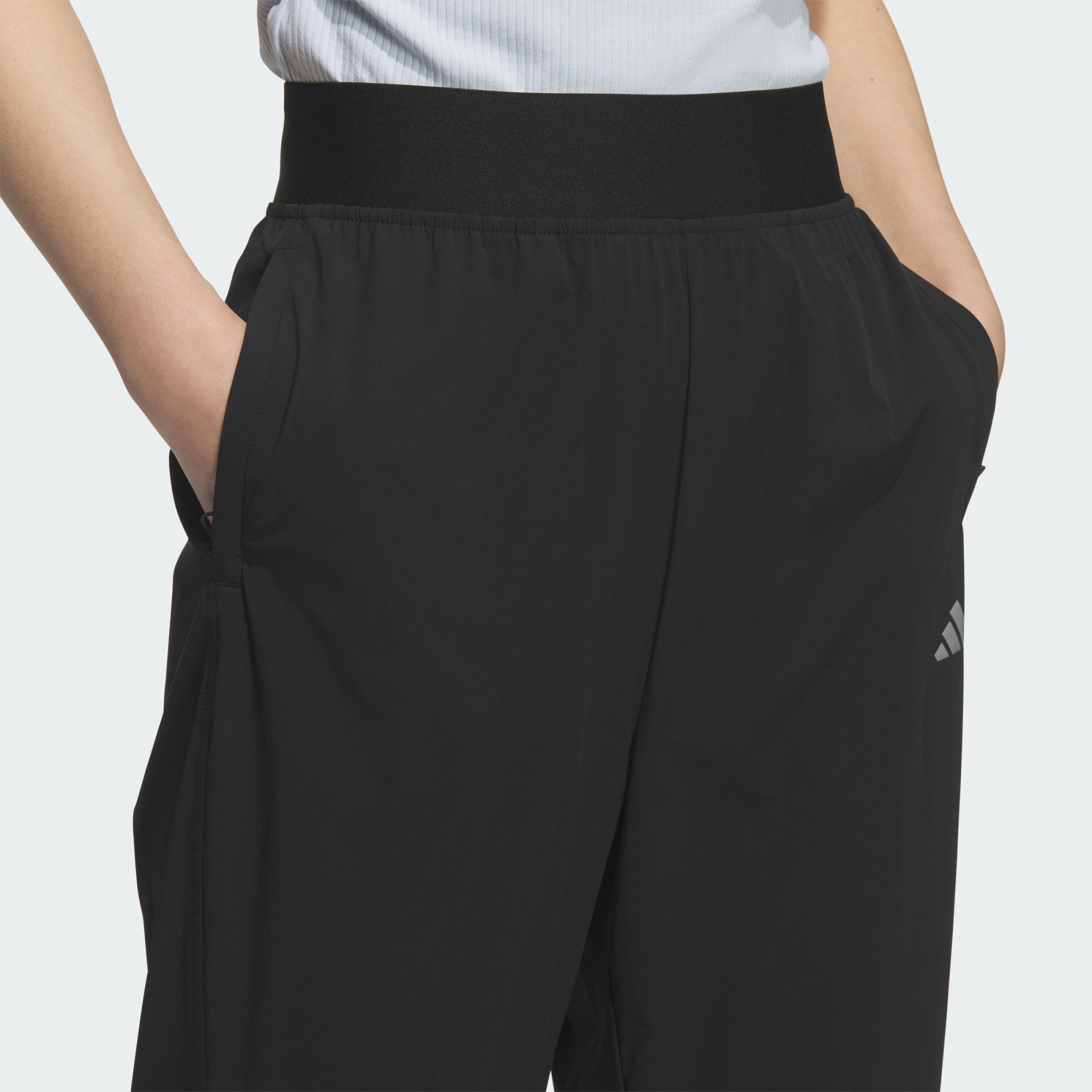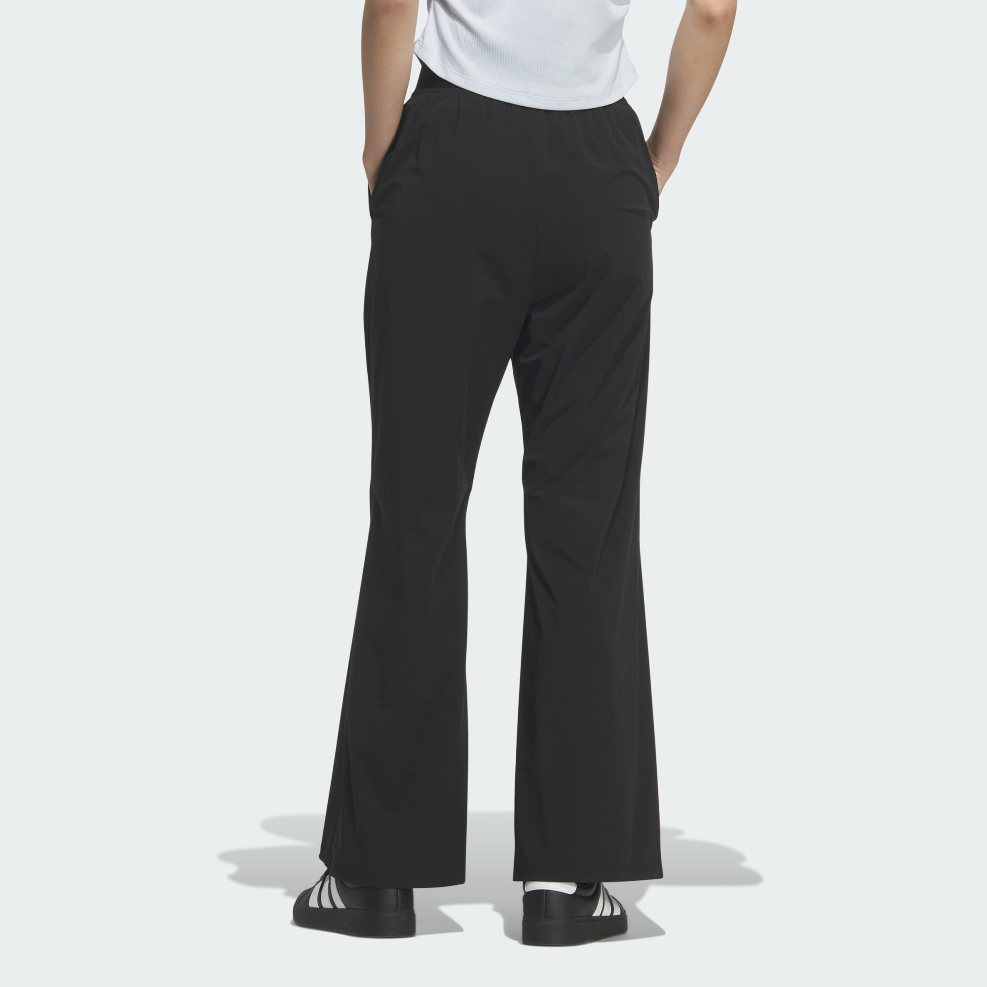 Kalhoty Flared Leg Woven kombinují styl a pohodlí. Jsou navrženy pro ty, kteří vyznávají dynamický životní styl, a nabízí lichotivou siluetu s mírně rozšířenými nohavicemi, které ti opticky prodlouží nohy. Středně vysoký pas zajišťuje pohodlné nošení a dodá celému outfitu nádech elegance. Ochrana UPF představuje praktické řešení pro slunečné dny. Tyto kalhoty jsou vyrobeny z tkaného materiálu, který příjemně chladí a má jemnou texturu, takže jsou vhodné pro letní dobrodružství. Tonální silikonový potisk loga se 3 proužky na přední straně přidává kalhotám typický detail adidas. Ať už si užíváš běžný den, nebo se chystáš na společenskou akci, tyto kalhoty stylově doplní tvůj outfit. Jejich elegantní design a rovný střih nabízí pohodlí a všestrannost.