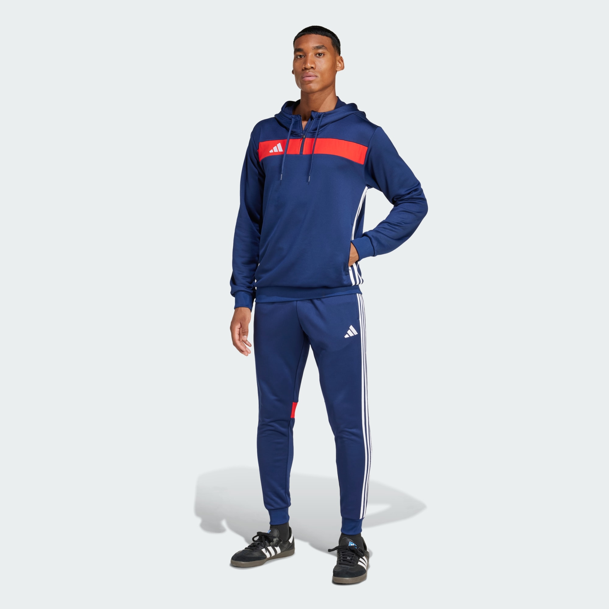Měkké fotbalové kalhoty Tiro vyrobené z recyklovaných materiálů.