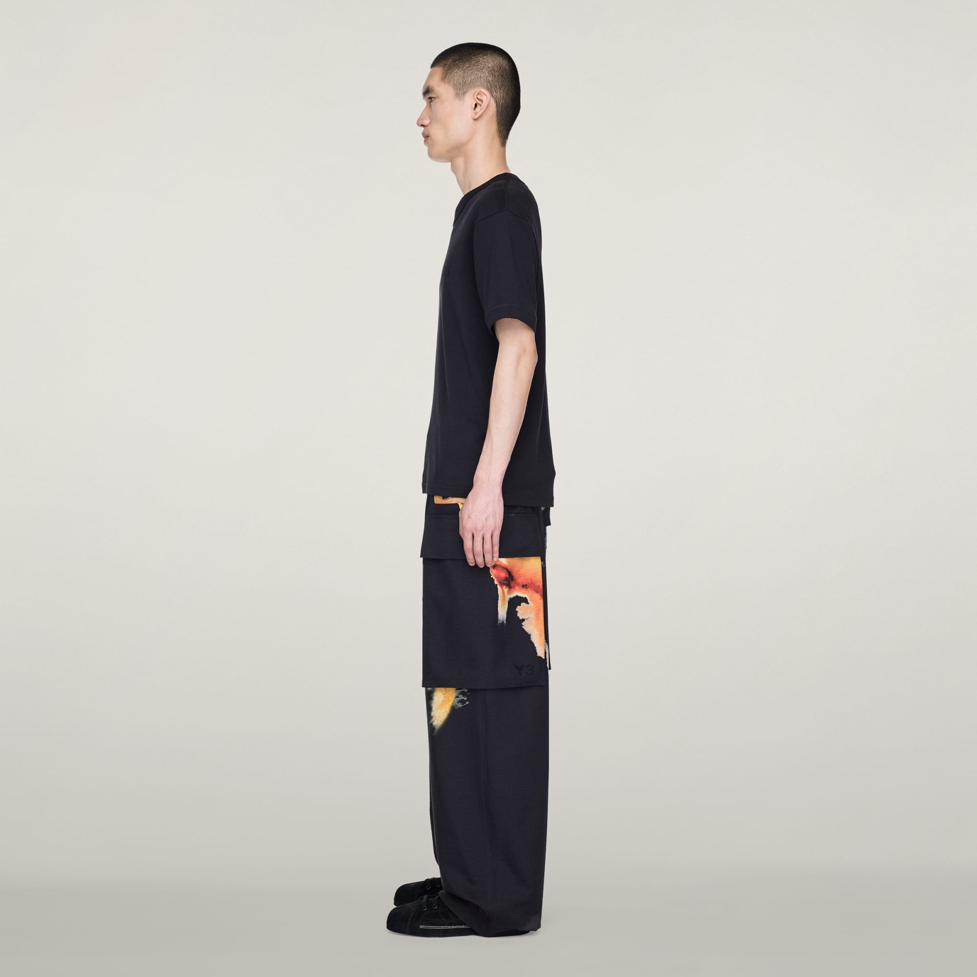 Stejně jako vešekerá tvorba značky Y-3 představují kalhoty Y-3 AOP Sport Uniform Cargo přepracovanou verzi oblíbeného modelu. Jsou vyrobené z kepru a mají volný, splývavý střih a stahovací šňůrky v lemech, které umožňují různé stylové variace. Několik kapes, některé s klopami a jiné bez nich, ti poskytnou místo na to nejnutnější. Unikátní potisk je vyjádřením tepla a energie, transformace a krásy, inspirovaný paletou jantarových barev od jemných zlatých odstínů až po sytě oranžovou a hnědou.