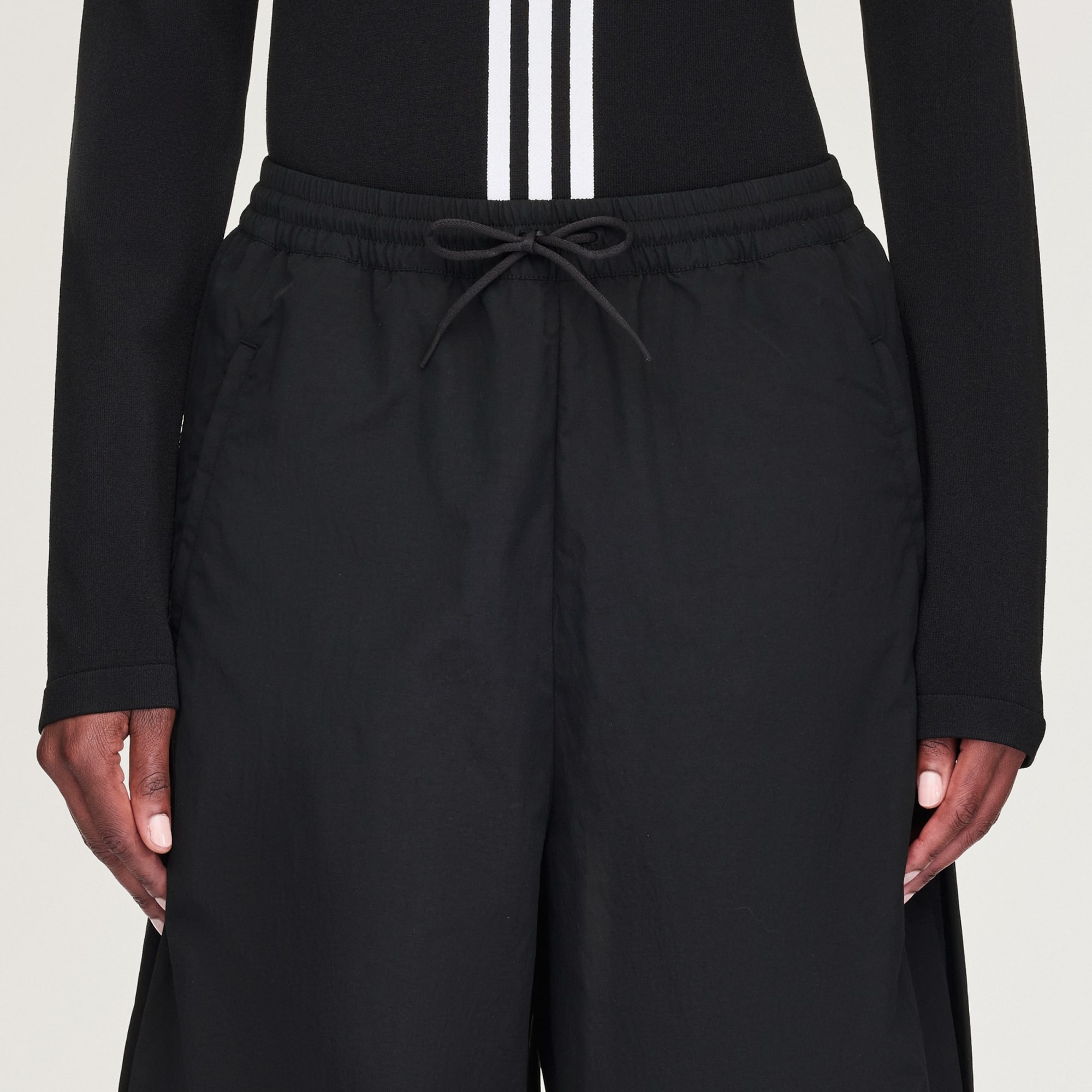 Značka Y-3 nachází sílu v jednoduchosti. Nylonové kalhoty od Y-3 mají čistý, minimalistický vzhled s plisovanými detaily po stranách. Jsou vyrobené z lehké pleteniny, která je na dotek hladká. Zapínání na patentky po stranách ti umožní přizpůsobit si velikost a vzhled.