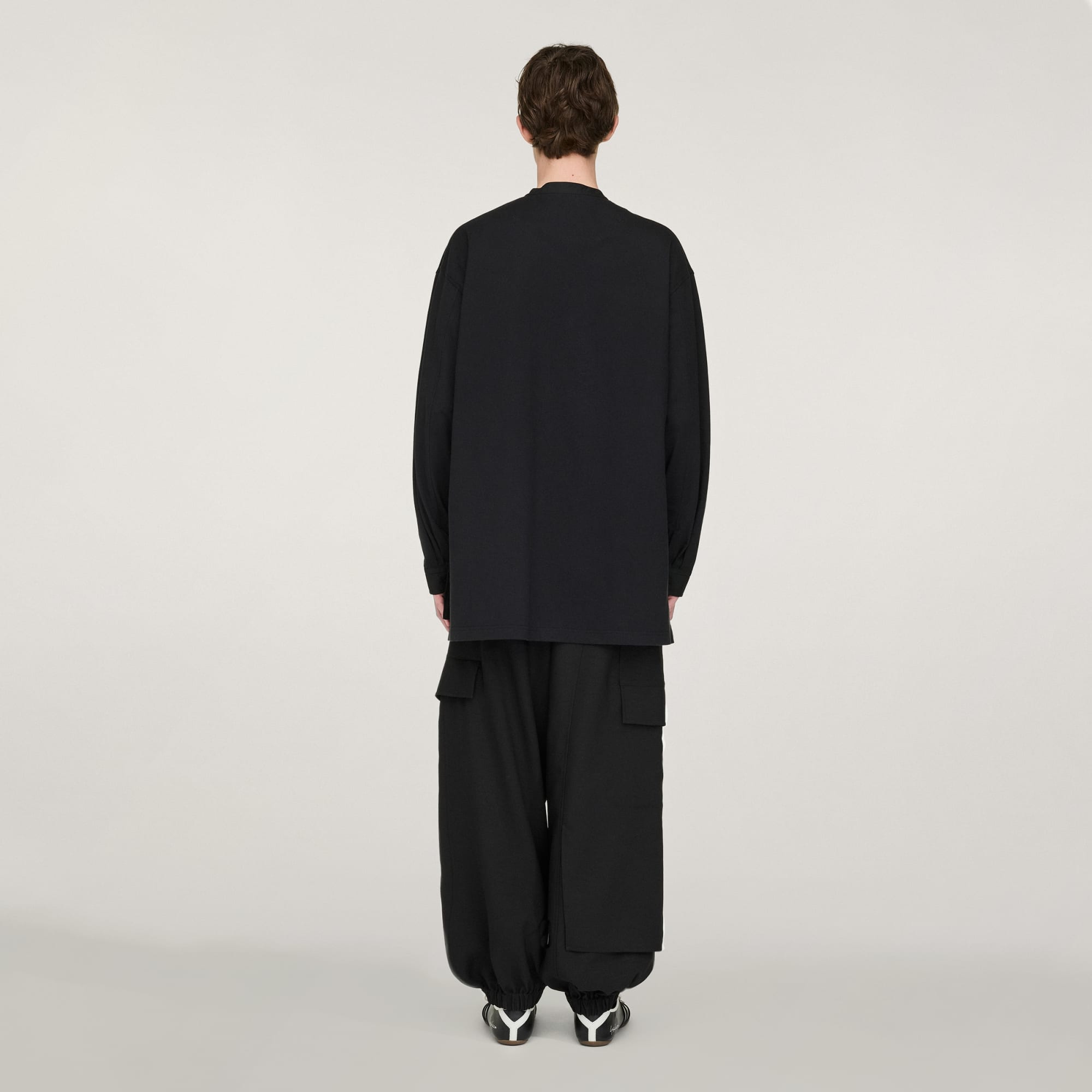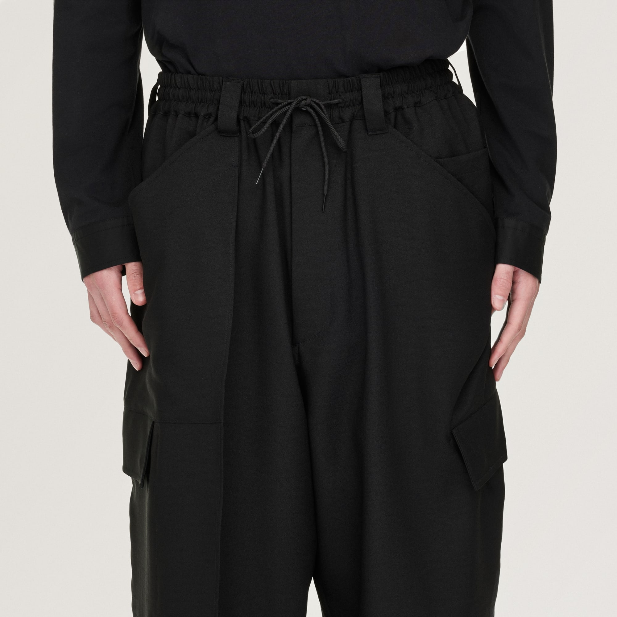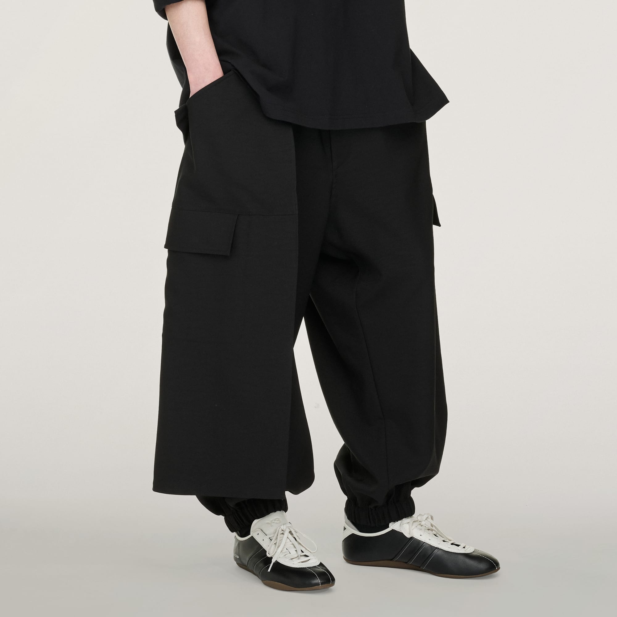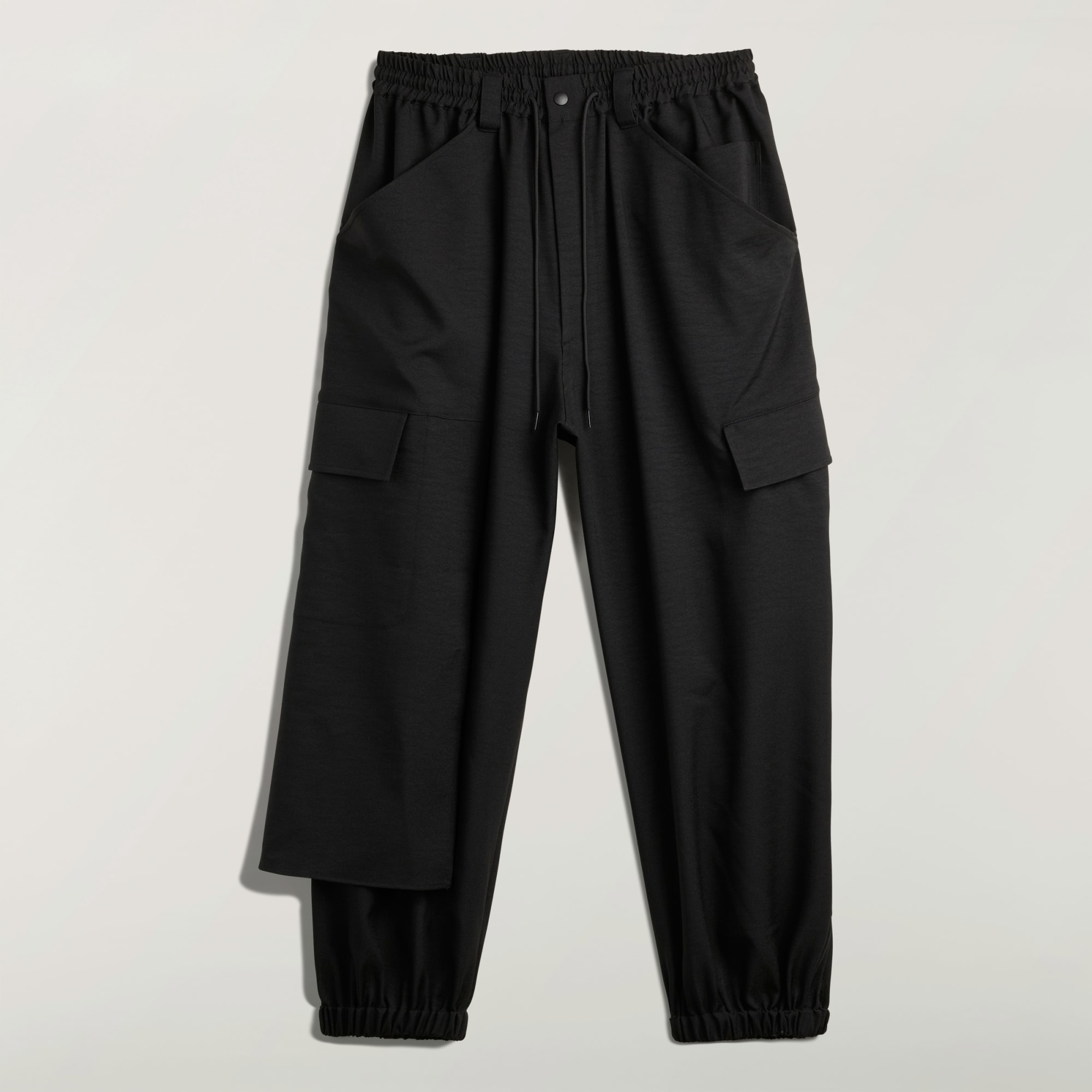 Cargo kalhoty Y-3 Sport Uniform s manžetami zkoumají napětí mezi pracovním oblečením, módou a sportem. Mají prostorný tvar a dvojvrstvé provedení na jedné straně pro výrazný, asymetrický vzhled. Několik kapes zvyšuje jejich funkčnost.