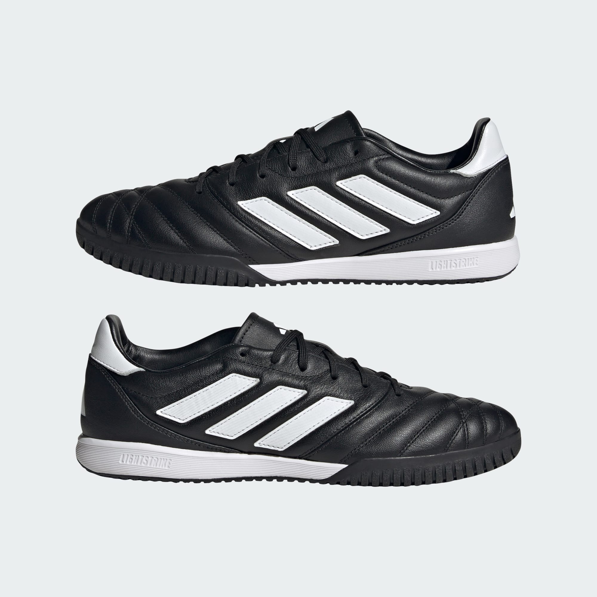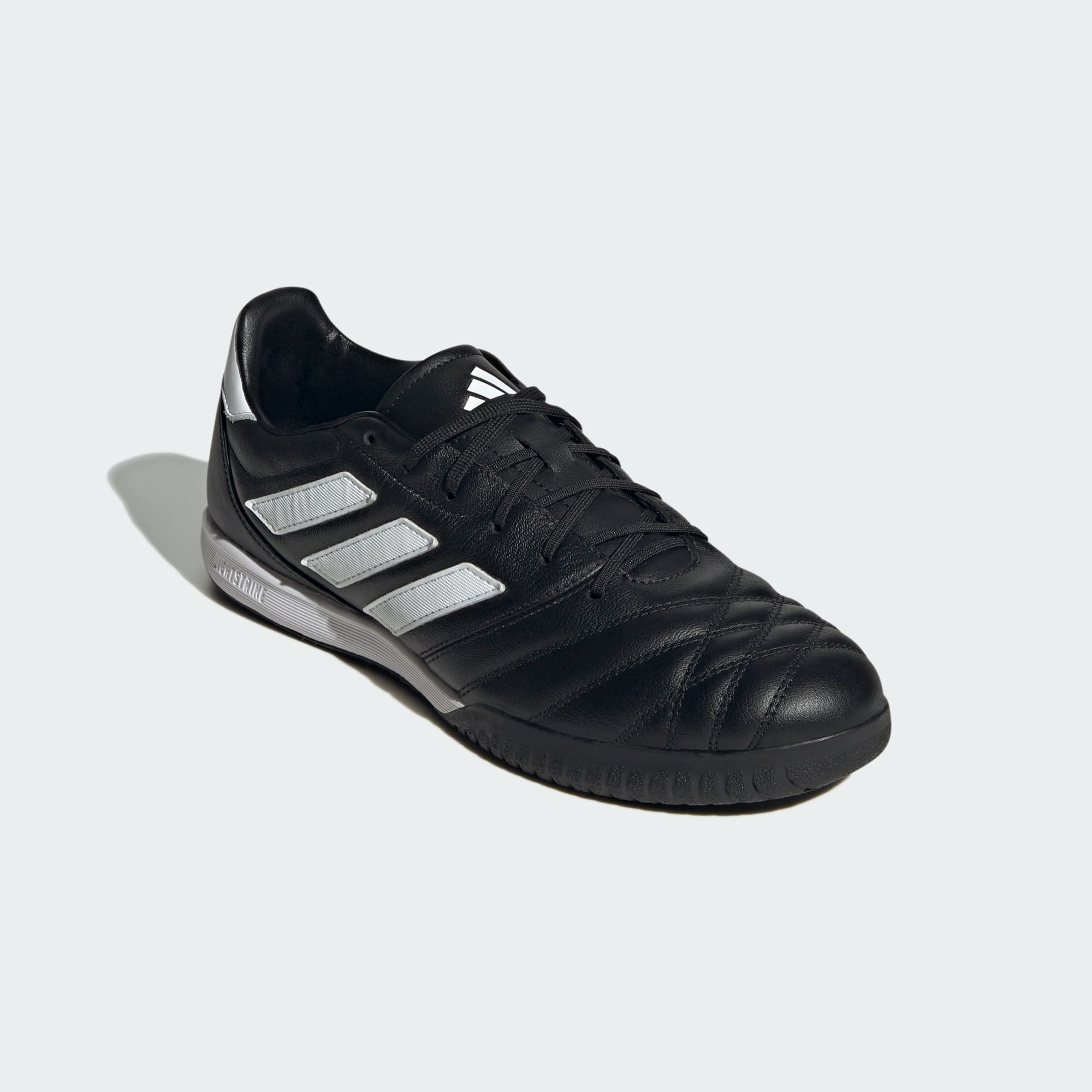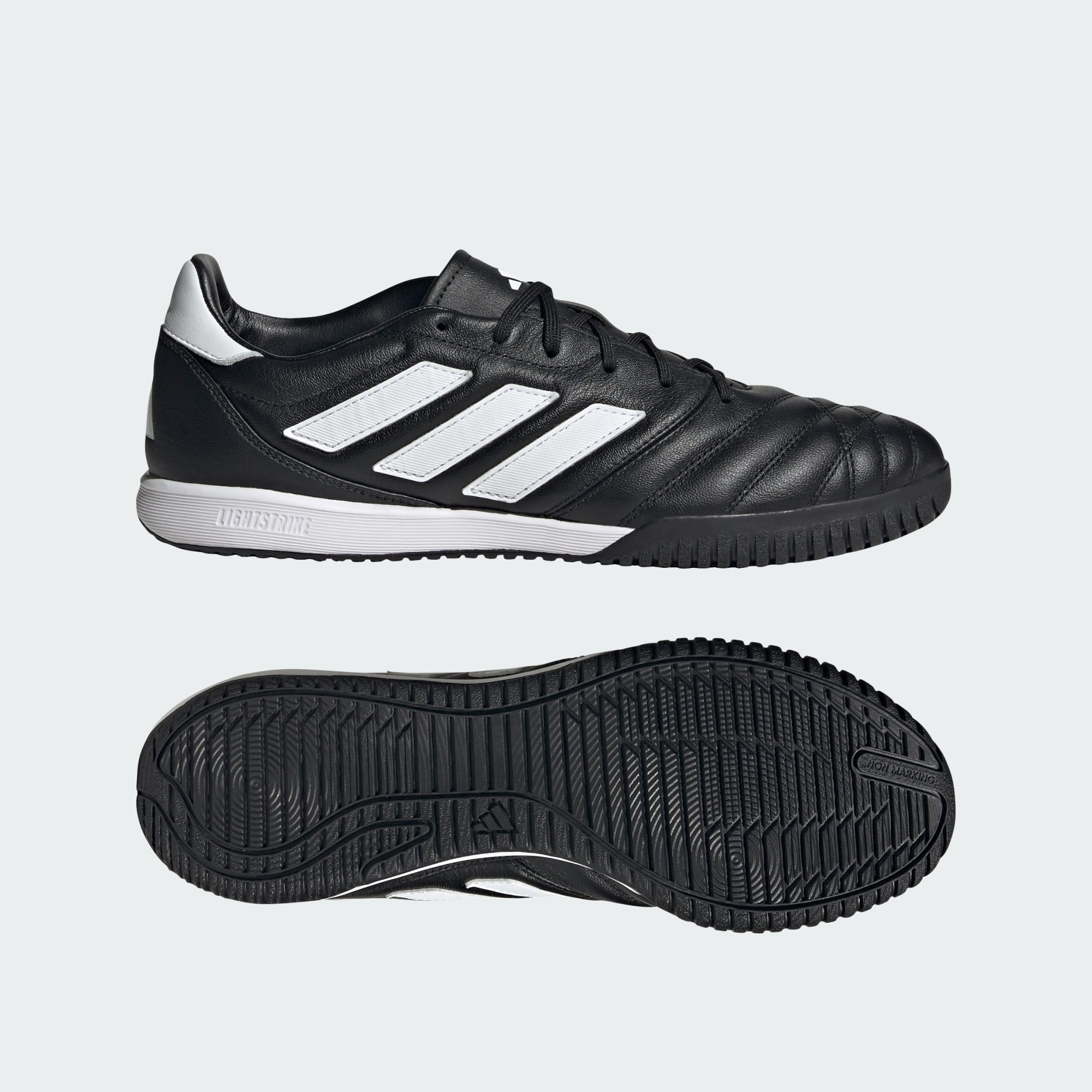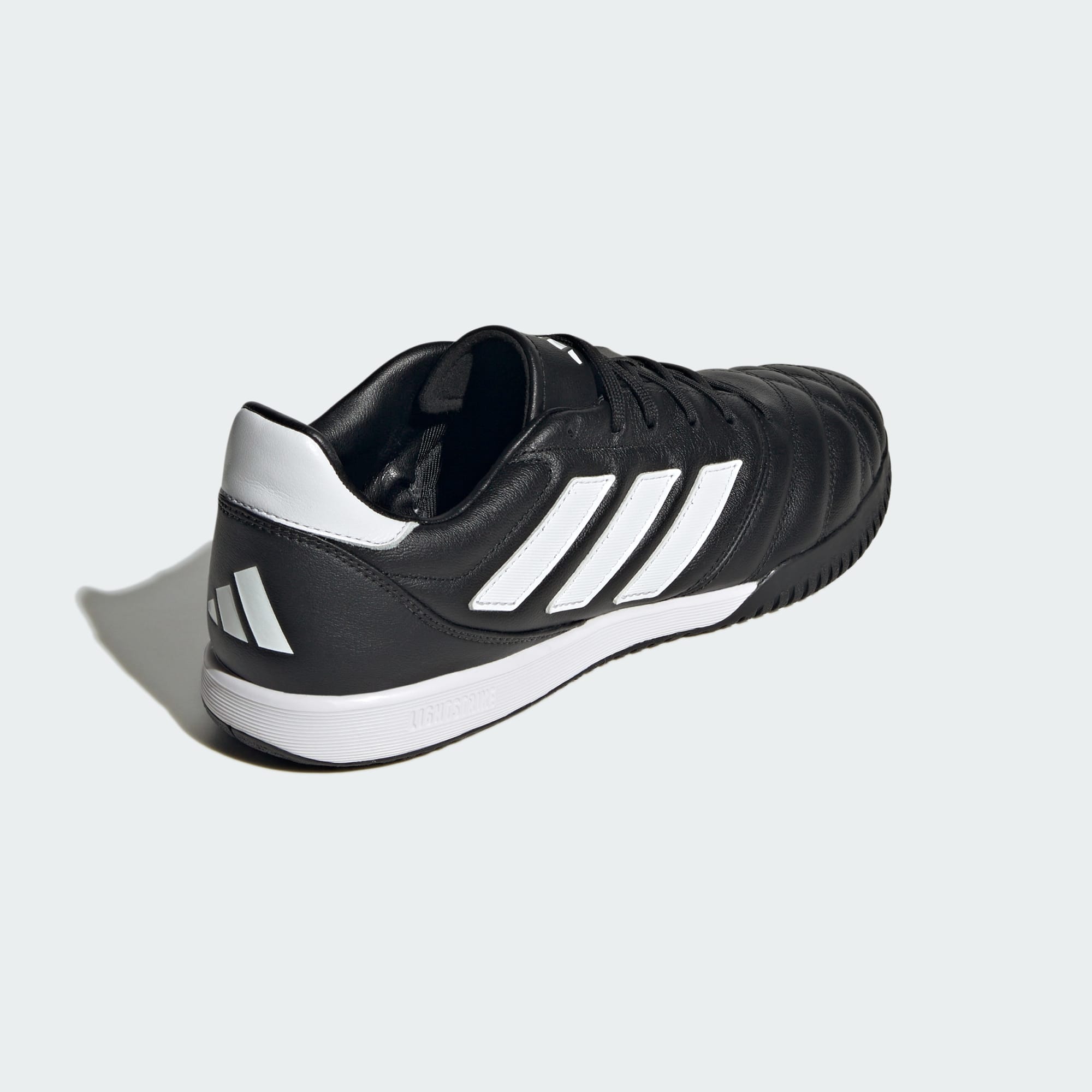 Vyhrávej stylově. Tyto kopačky adidas mají pohodlný kožený svršek s klasickými detaily, který se přizpůsobí tvaru tvojí nohy. Mezipodešev Lightstrike s aktivním odpružením dodá tvým krokům energii. Speciální podešev zaručí přilnavost na tvrdém hladkém povrchu ve sportovní hale. Stylový vzhled dotvářejí linie inspirované kopačkami Copa Mundial. Tento produkt obsahuje nejméně 20 % recyklovaných materiálů. Recyklované materiály nám pomáhají snižovat objem odpadu, spotřebu omezených zdrojů a uhlíkovou stopu našich produktů.