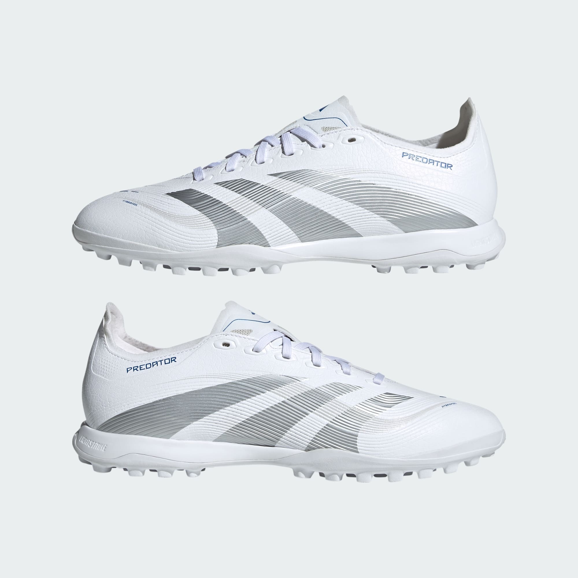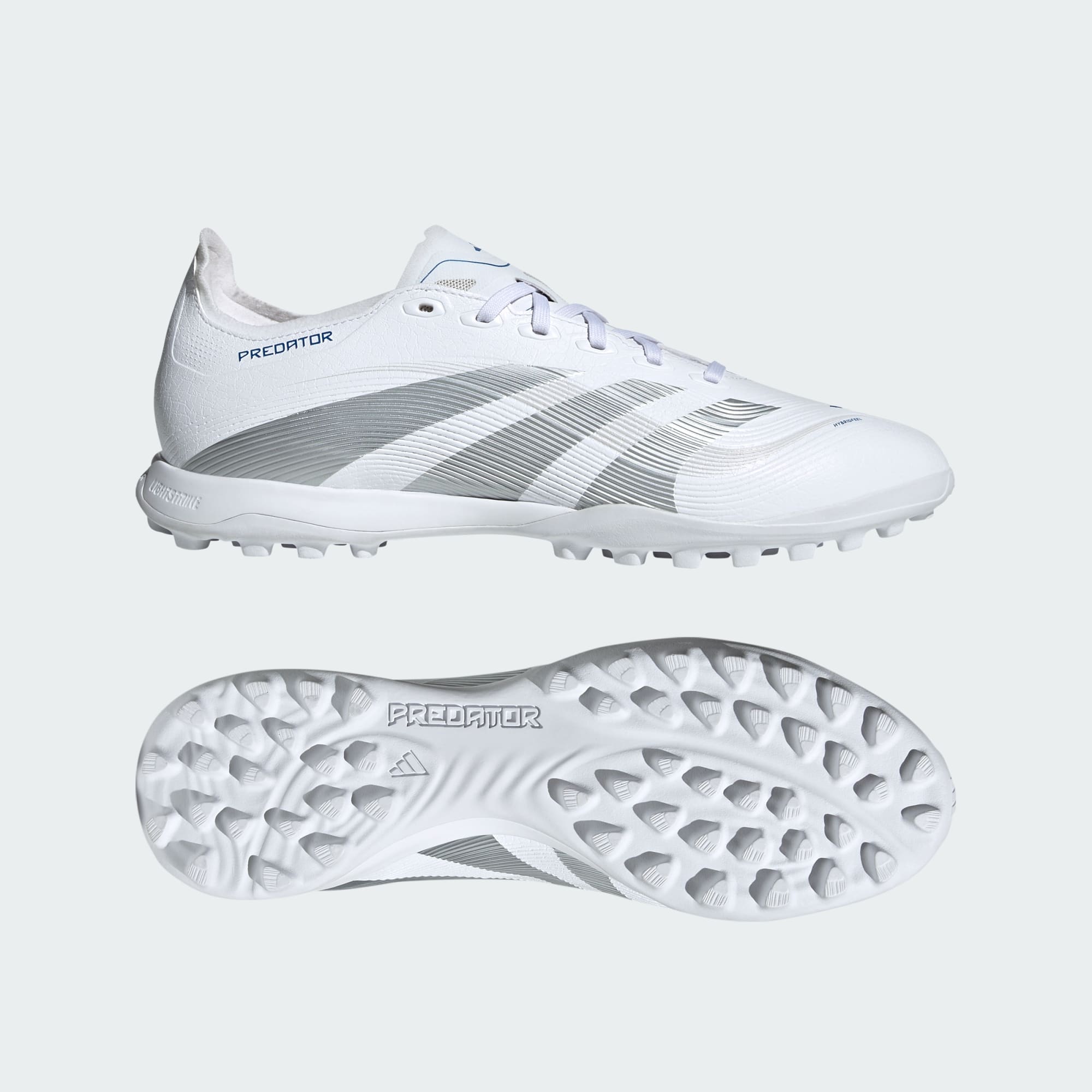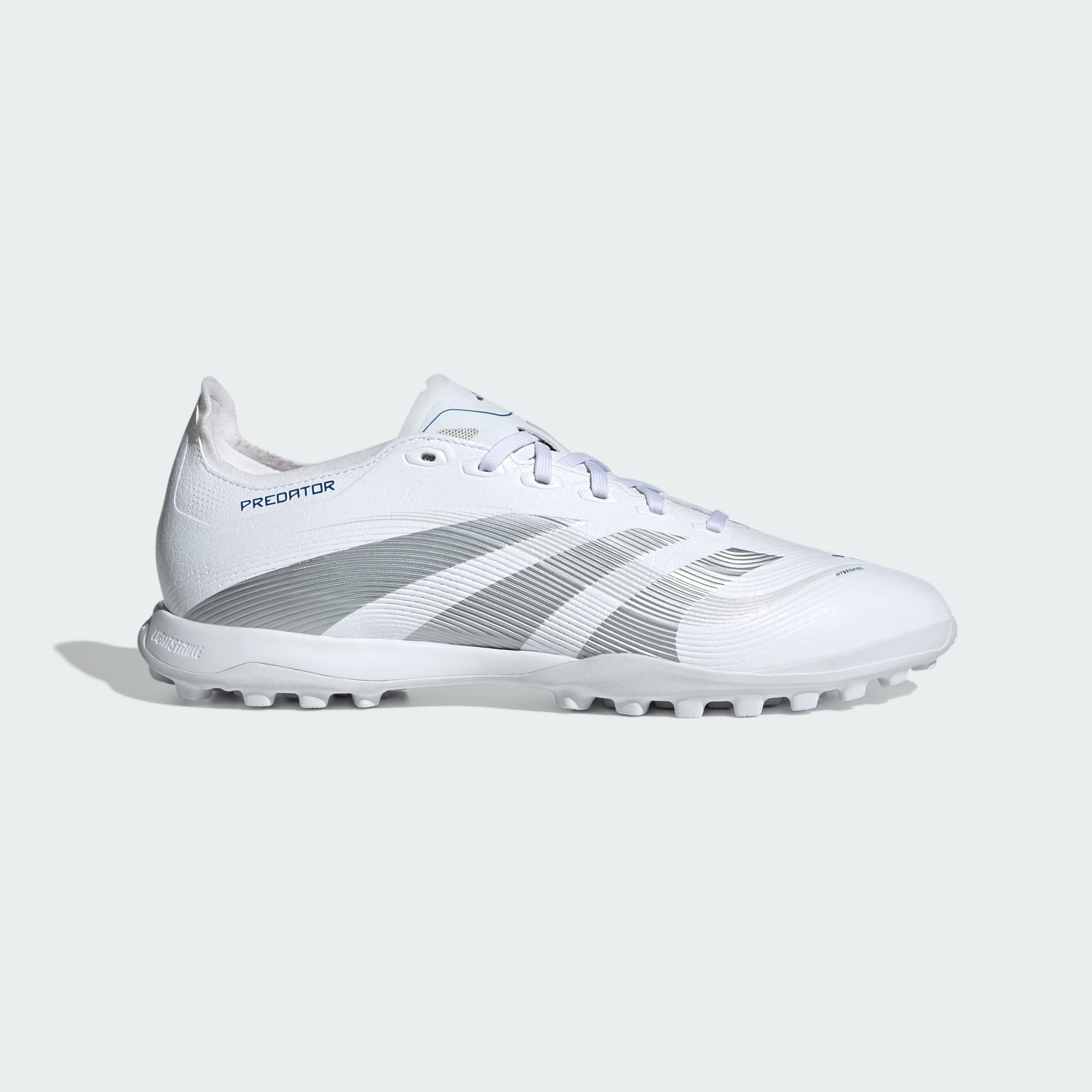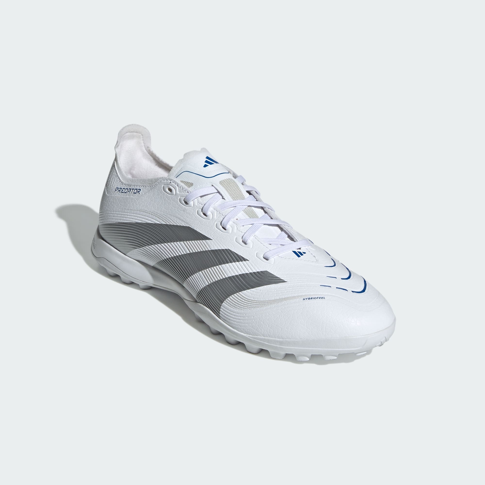 V těchto kopačkách adidas Predator League budeš moci hrát naplno. Svršek HybridFeel s celoplošnou 3D texturou a přilnavými prvky Strikescale ti umožní přesnější práci s míčem. Gumová podešev s výstupky ti na umělém trávníku zaručí stabilitu.