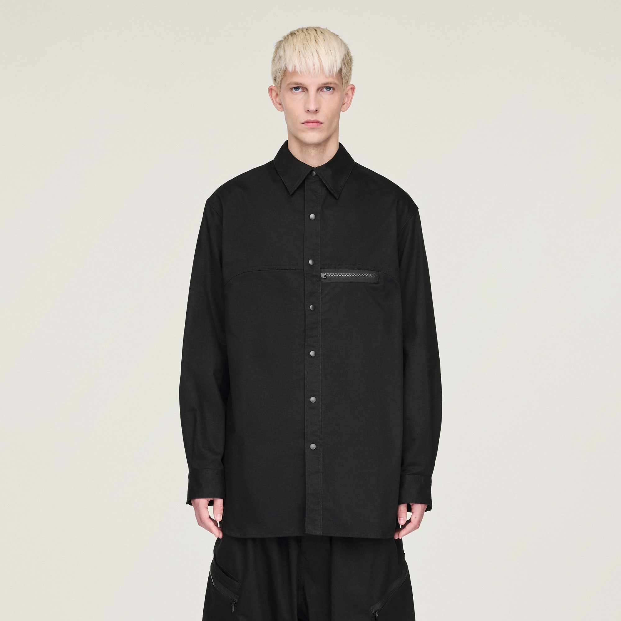 Y-3 zkoumá prostor mezi sportem a módou a vytváří kousky, které jsou zároveň funkční i sofistikované. Košile od Y-3 je vyrobená z pevného kepru z bavlny a konopí a má prodloužený zadní díl a náprsní kapsou.
