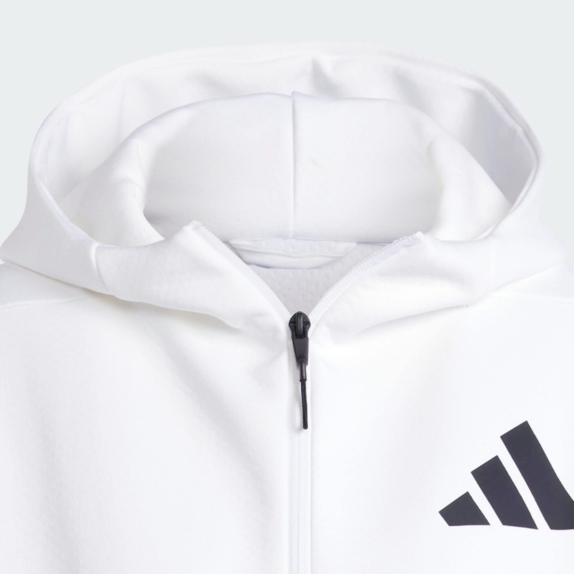 A close up of a matte rubber zip on the ADIDAS Z.N.E. hoodie.