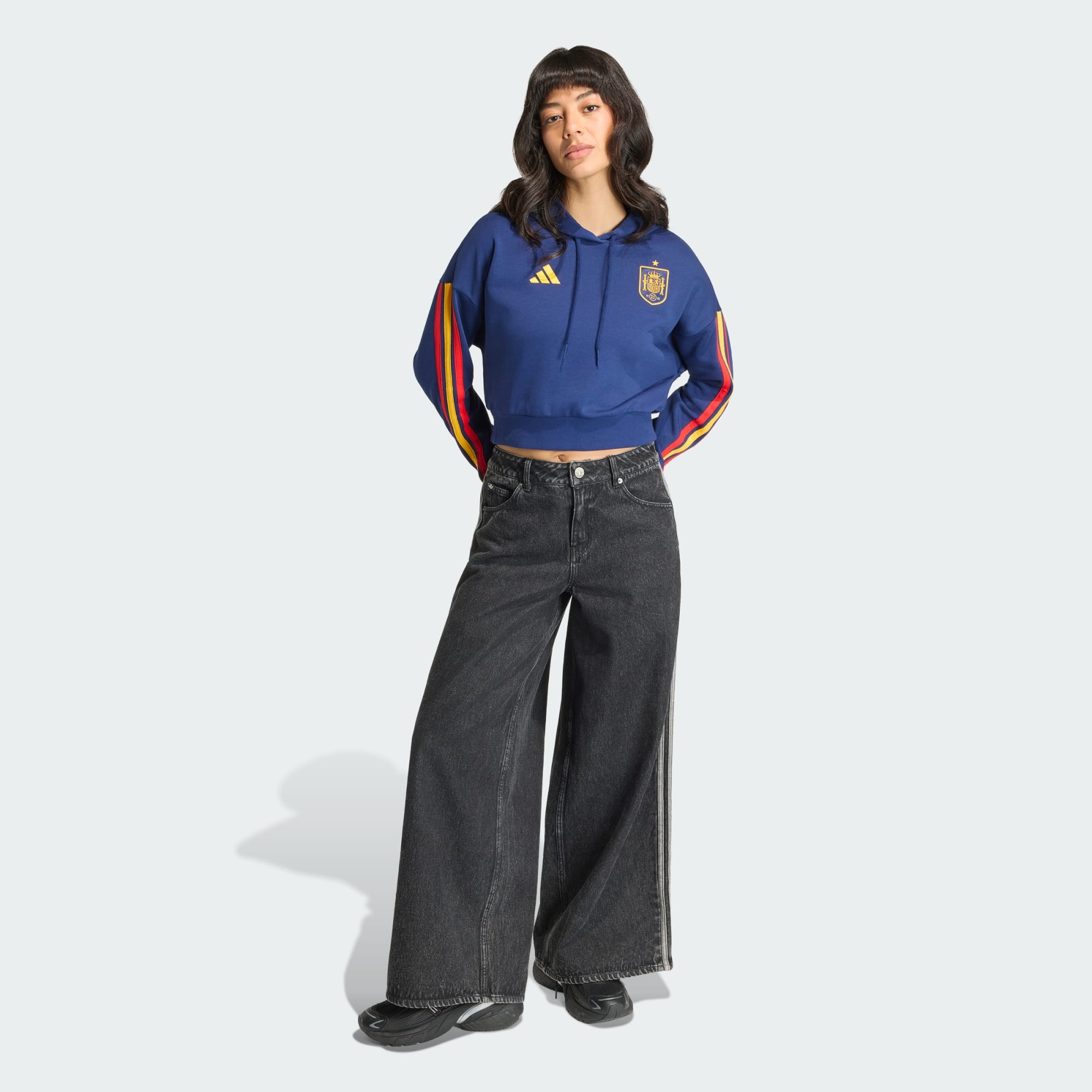 Mikina Spain DNA má elegantní design, do kterého vnáší ležérní fotbalový styl. Promyšlené detaily a rovný střih vytvářejí univerzální model elegantního vzhledu. Mikina je vyrobená z francouzského froté poskytující stejnou měrou příjemnou strukturu i měkkost. Když je potřeba, v kapuci se dobře schováš a propracované proporce ti nabídnou pohodlí při vrstvení i samostatném nošení. Tato mikina s kapucí, zdobená logem adidas Performance a znakem federace, se snaží odrážet španělskou fotbalovou tradici v moderním střihu s nenuceným stylem.