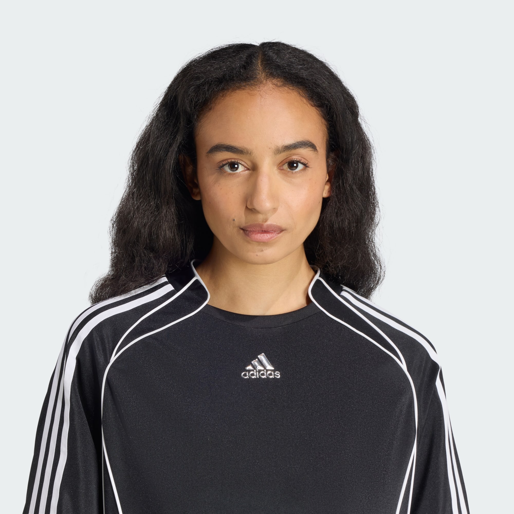 Tyto minišaty adidas v sobě spojují odvážného ducha fotbalové estetiky s módním flitrovým nádechem. Volná mini konstrukce je doplněna sportovním límcem, který odkazuje na fotbalové dresy, a je zakončena ikonickým střihem Teamgeist – archivním designem, který způsobil revoluci na hřišti. Spodní polovina šatů je pokryta velkými flitry, které jim dávají výrazný styl.