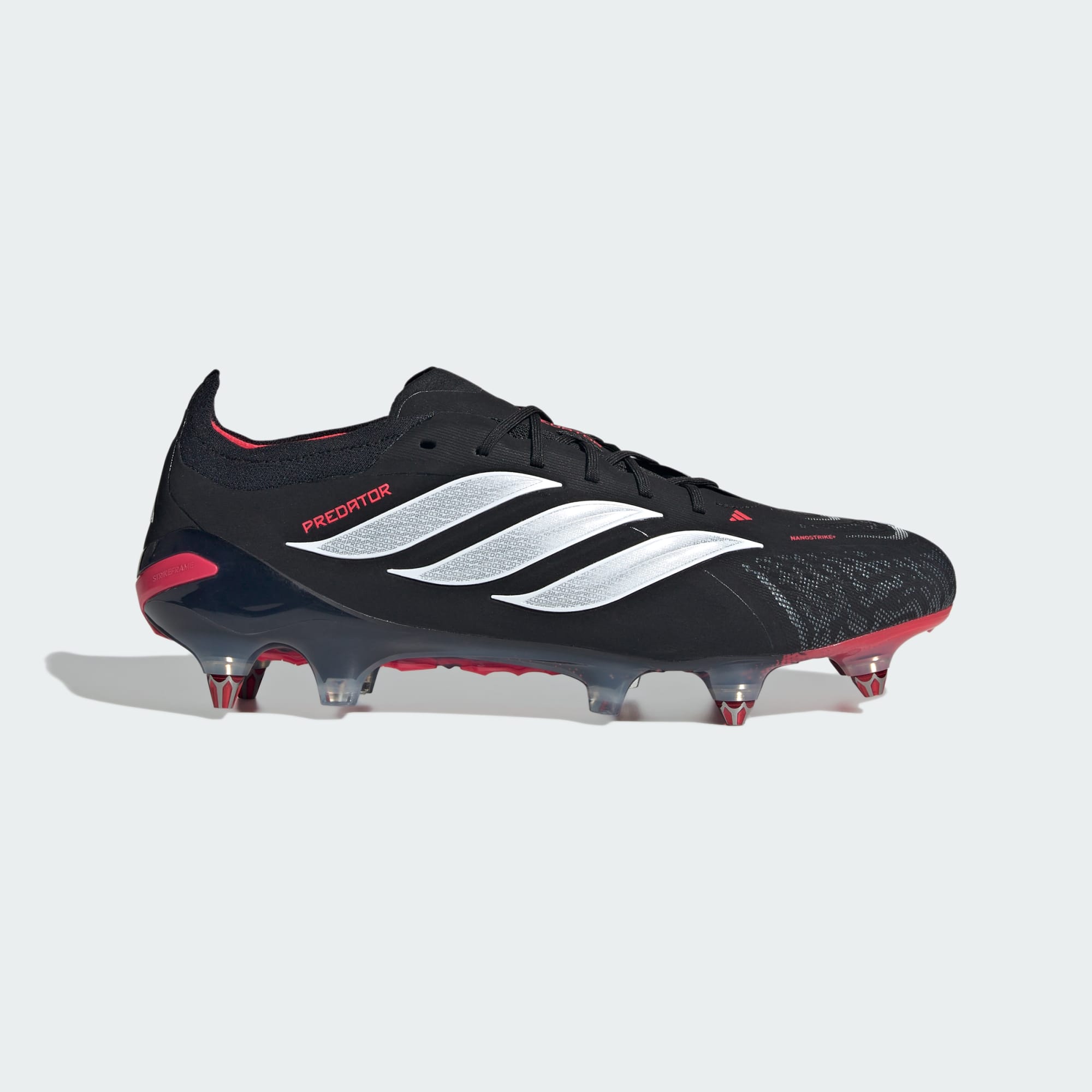 Play with confidence in our Predator Elite Soft Ground Football Boots, designed with innovative mesh and Nanostrike+ technology, helping you to take control in front of the goal. The integrated high-performance Powerspine technology is crafted to support your shots, while the soft upper wraps you in comfort, for a snug fit and natural expansion during intense play. With removable studs, extra studs, and a stud wrench to adapt to soft ground, the Strikeframe offers lightweight traction, while hexagonal studs reduce weight without compromising grip. Endorsed by professionals, now you can experience the synergy of adidas innovation, to unlock those goal-scoring moments whatever the weather.