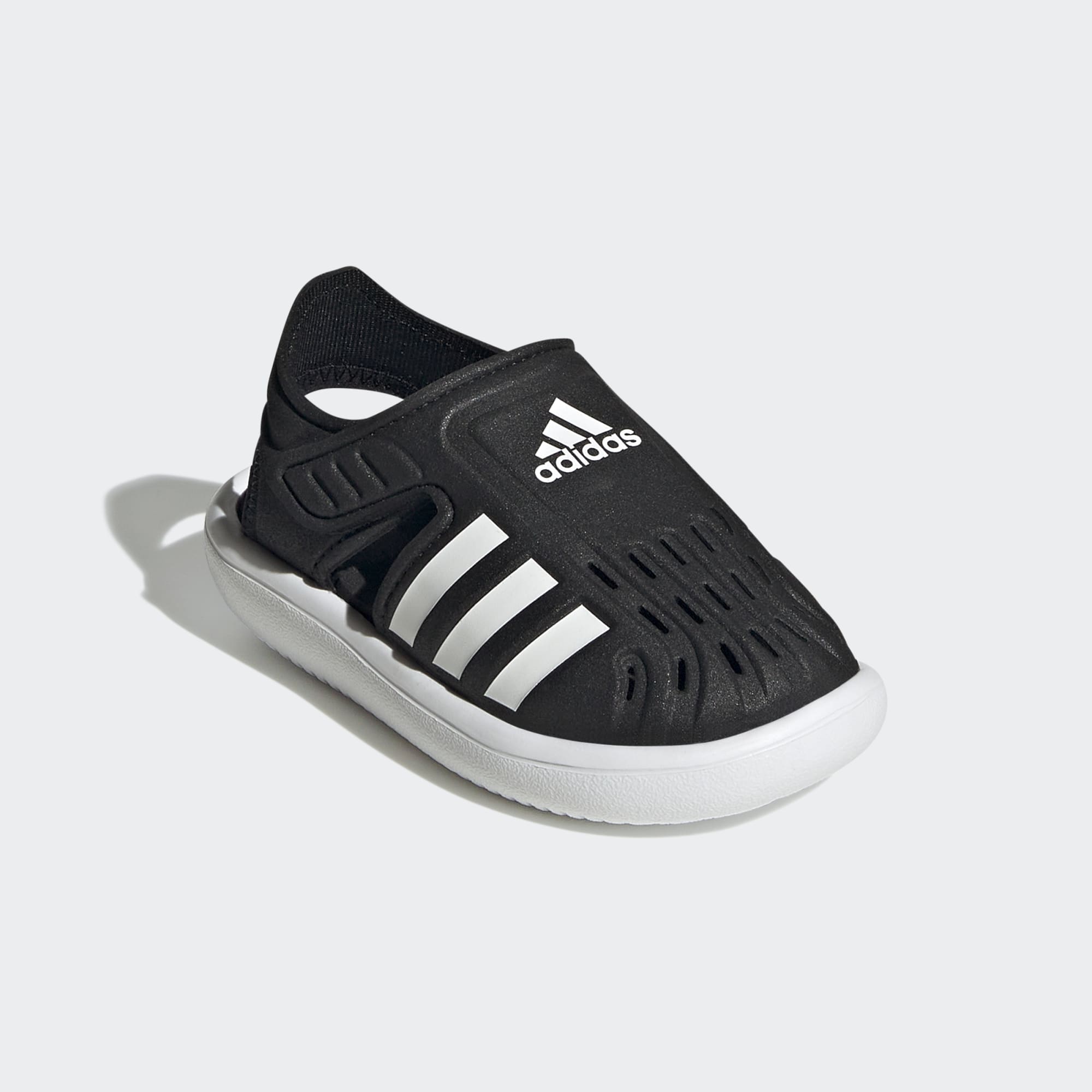 Dopřejte dětem pohodlí. Tyto sandály adidas pro nemluvňata mají tvarovanou stélku z EVA, která malým nožkám dopřeje pohodlí a optimální zpevnění. Krytá špička zaručí, že boty dětem skvěle padnou. Zapínání na suchý usnadní přezouvání.