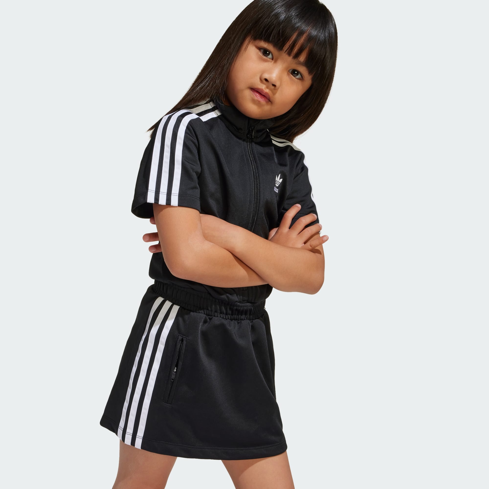 Dětské šaty adidas Firebird vyrobené z recyklovaných materiálů.