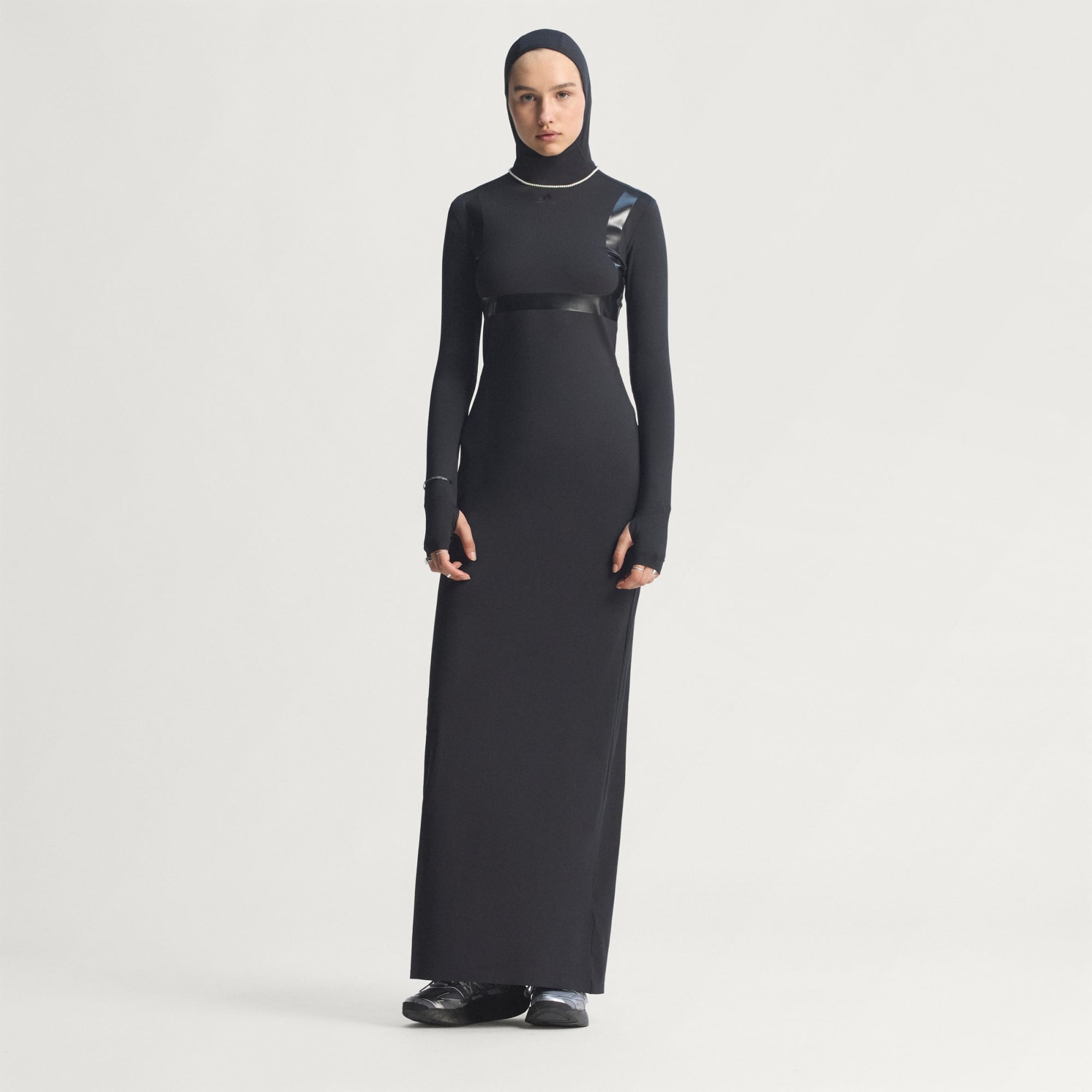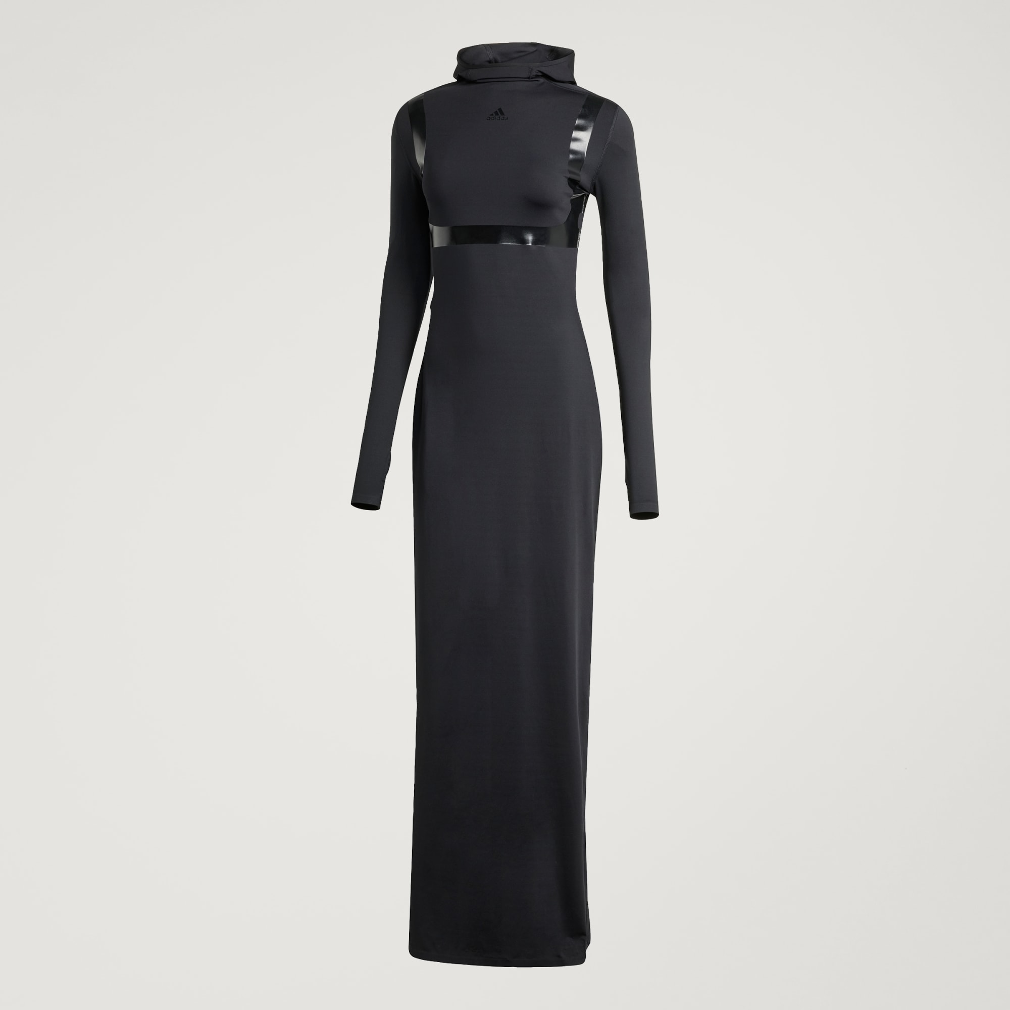 Když se spojí výkon a klubový život, stane se kouzlo. Jako třeba tyto šaty od adidas, které si berou inspiraci z obou světů. Přiléhavá silueta má pružnou, interlokovou konstrukci, takže představuje oslavu každé křivky. Maxišaty sahají až na zem a kapuce a dlouhé rukávy jim dodávají ještě tajemnější půvab.