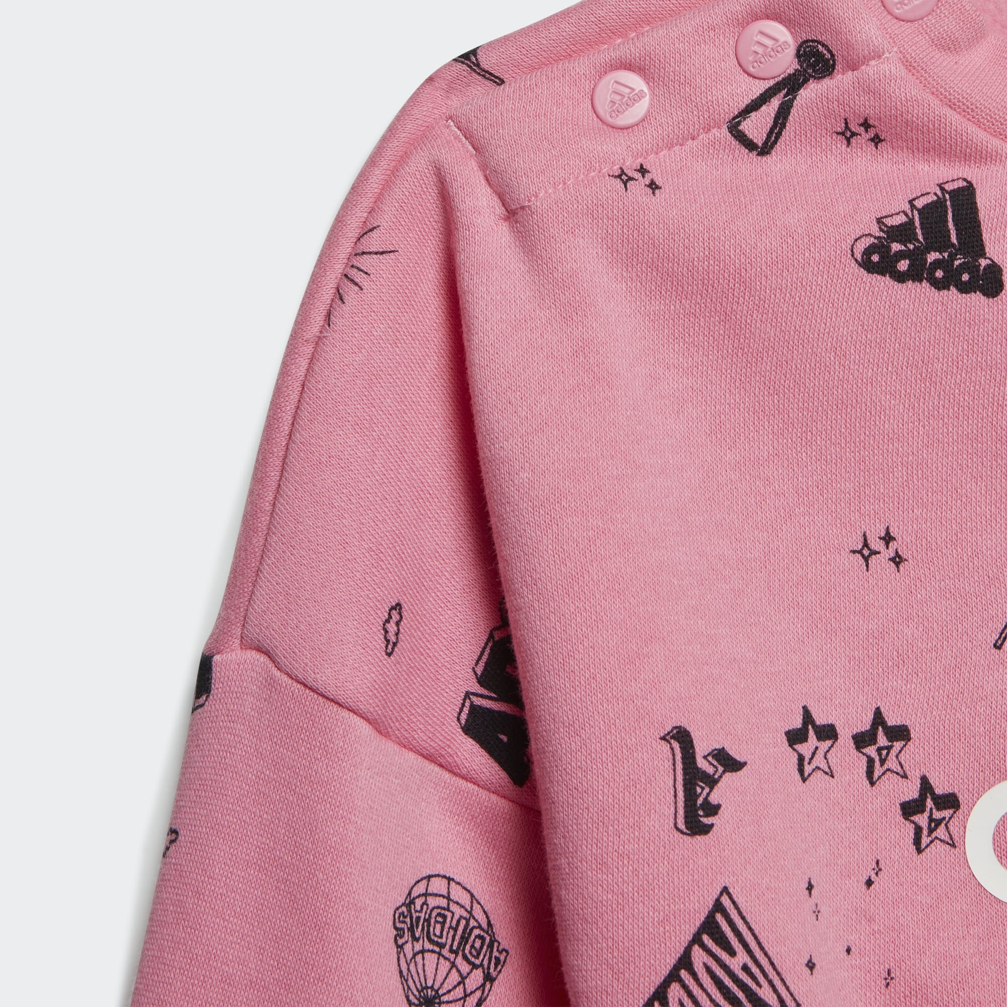 Když naši nejmenší v pohodlí, mohou svobodně objevovat svět kolem sebe. V této pohodlné soupravě adidas pro nejmenší se vaše ratolest bude moci vydat za dobrodružstvím. Je vyrobená z měkké broušené tkaniny, která malým neposedům dopřeje hřejivé pohodlí. Mikina má volné netopýří rukávy. Díky patentkám na rameni bude převlékání hračka. Ve spolupráci s iniciativou Better Cotton zlepšujeme podmínky pěstování bavlny po celém světě. Aktivity této iniciativy mají pozitivní dopad na pěstitele, životní prostředí i budoucnost celého odvětví. Bavlna Better Cotton se pořizuje přes zpracovatelsko-dodavatelský řetězec, který se označuje jako „hromadná bilance“. To znamená, že nelze fyzicky dohledat původ bavlny použité v konkrétním produktu. Farmáři zapojení do programu Better Cotton však těží z našich nákupů tohoto typu bavlny. Víc informací najdeš na bettercotton.org/learnmore.