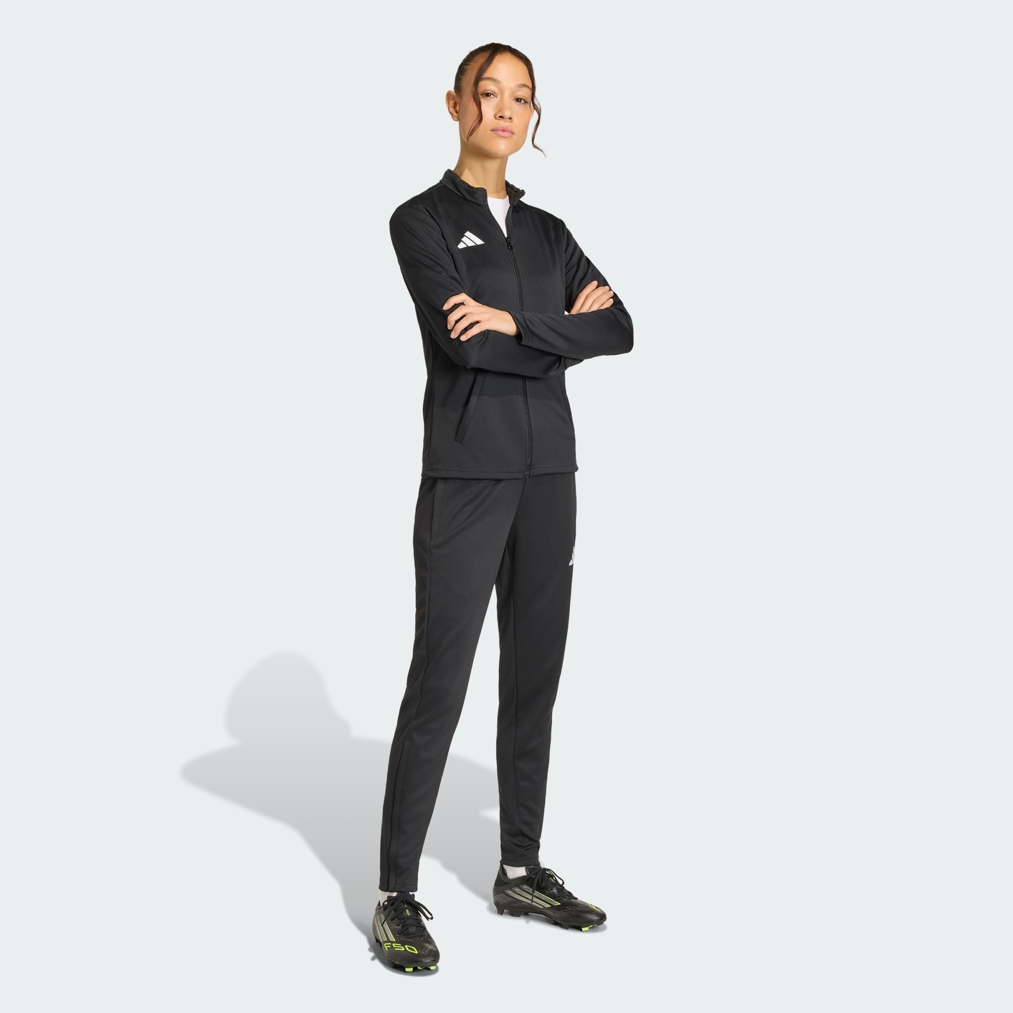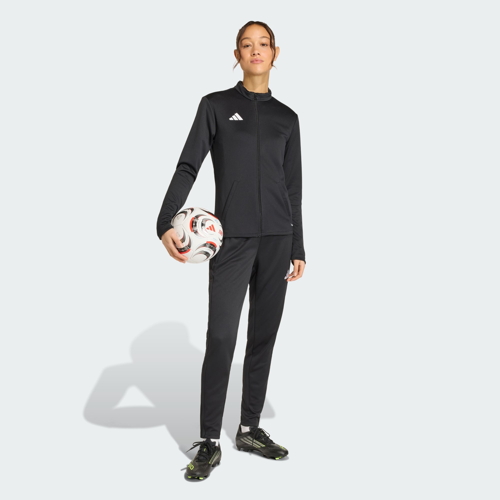 Ve sportovní bundě Entrada 26 se budeš cítit sebejistě na hřišti i mimo něj. Tato bunda navržená pro fotbalové nadšence kombinuje historické detaily s moderním nádechem. Její elegantní design a přiléhavý střih umožňují všestranné vrstvení a styling. Technologie Climacool ti pomůže cítit se v chladu a suchu, zatímco tkanina odvádí vlhkost a rozptyluje pot. Vyšívaný Badge of Sport dodává nádech hrdosti a autenticity adidas a ukazuje náš závazek ke kvalitě. Ať už trénuješ, nebo odpočíváš, tato bunda tě nezklame.