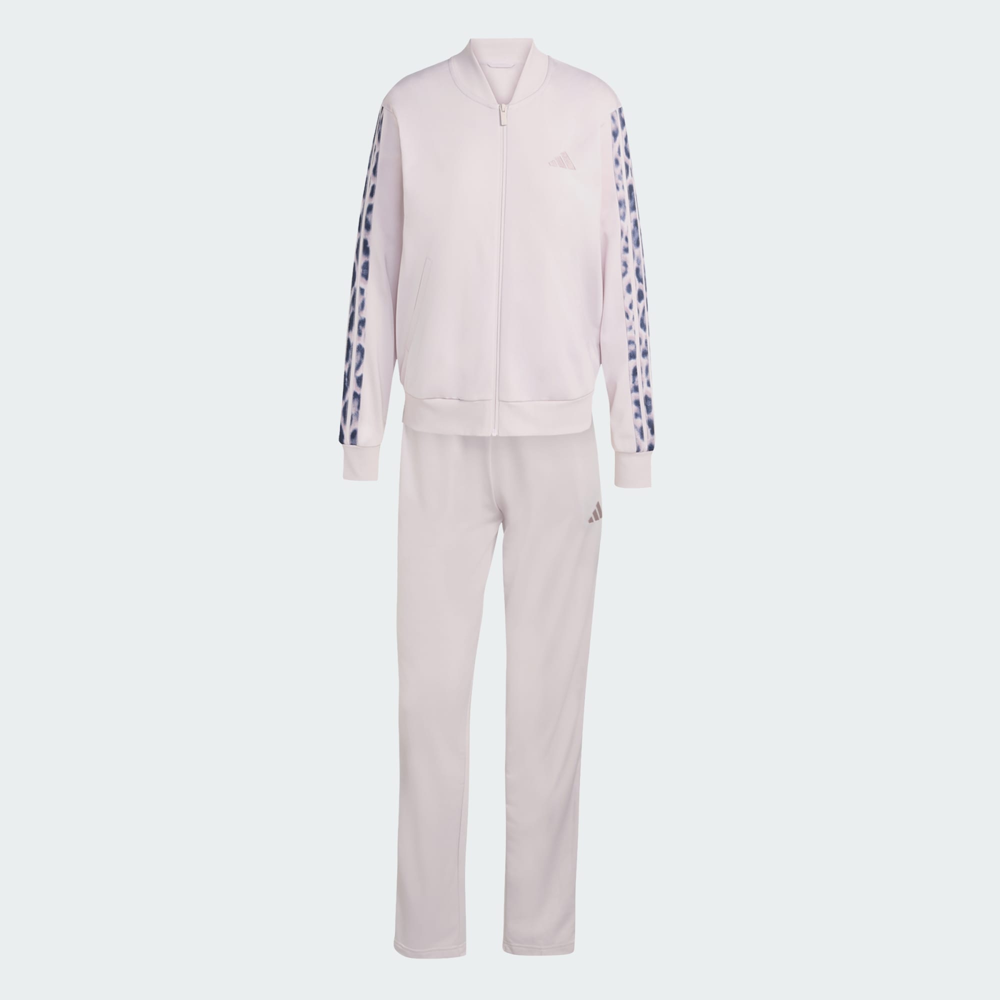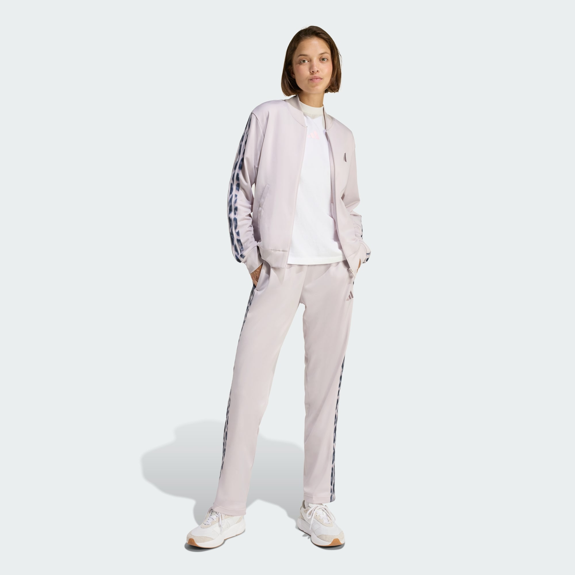 Tato sportovní souprava Leopard Print 3-Stripes s moderním střihem a nádechem tradice je navržená s ohledem na tvůj stávající šatník. Kultovní 3 proužky s leopardím vzorem dodají tvému vzhledu hravý šmrnc, který ti bude slušet při jakékoli příležitosti. Tato sportovní souprava vyrobená z odolného trikotu je zárukou pohodlí. Budeš se v ní cítit skvěle na neformální procházce i na setkání s přáteli. Je navržená s ohledem na praktičnost. Zip po celé délce uprostřed usnadní oblékání. Rovný střih tě neomezí v pohybu. Středně vysoký pas a zúžené vnitřní švy v běžné délce lichotivě zvýrazní postavu. Vyšívané logo 3 Bar odkazuje na dědictví značky adidas. Inspiruj se tradicí sportovního oblečení a oblékni si tuto funkční a zároveň stylovou soupravu.