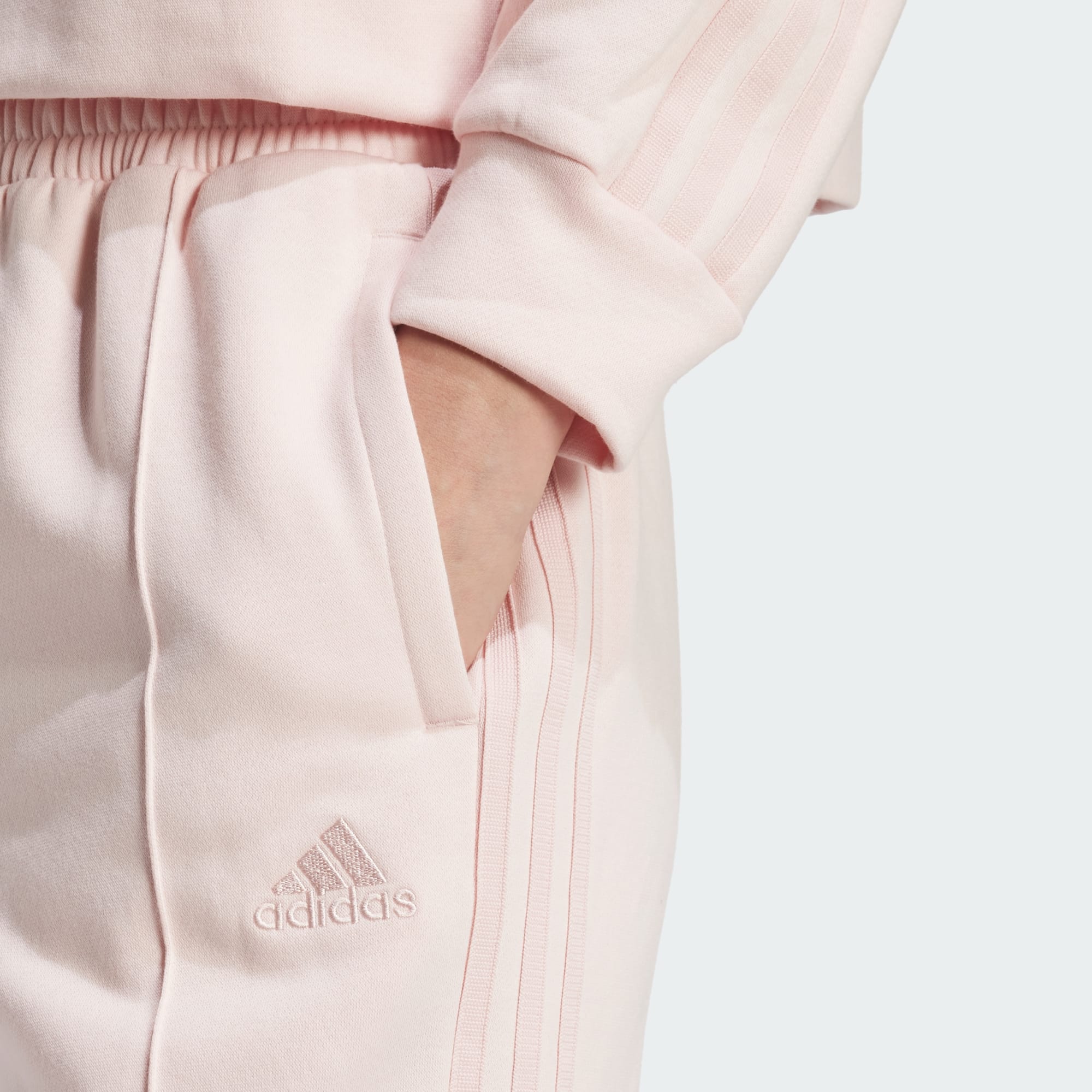 Tato sportovní souprava ti dopřeje volnost pohybu při každém dobrodružství. Tato sportovní souprava adidas je vyrobená z příjemného směsového flísu a zdobí ji klasické 3 proužky. Dopřeje ti pohodlí a zároveň ti dodá stylový sportovní vzhled. Volné kalhoty s vysokým pasem tě neomezí v pohybu. Recyklované materiály nám umožňují zpracovat produkty, které již dosloužily, a snížit množství odpadu. Závislost na omezených zdrojích snižujeme také používáním obnovitelných materiálů. Naše produkty vyrobené ze směsi recyklovaných a obnovitelných materiálů obsahují minimálně 70 % těchto materiálů.