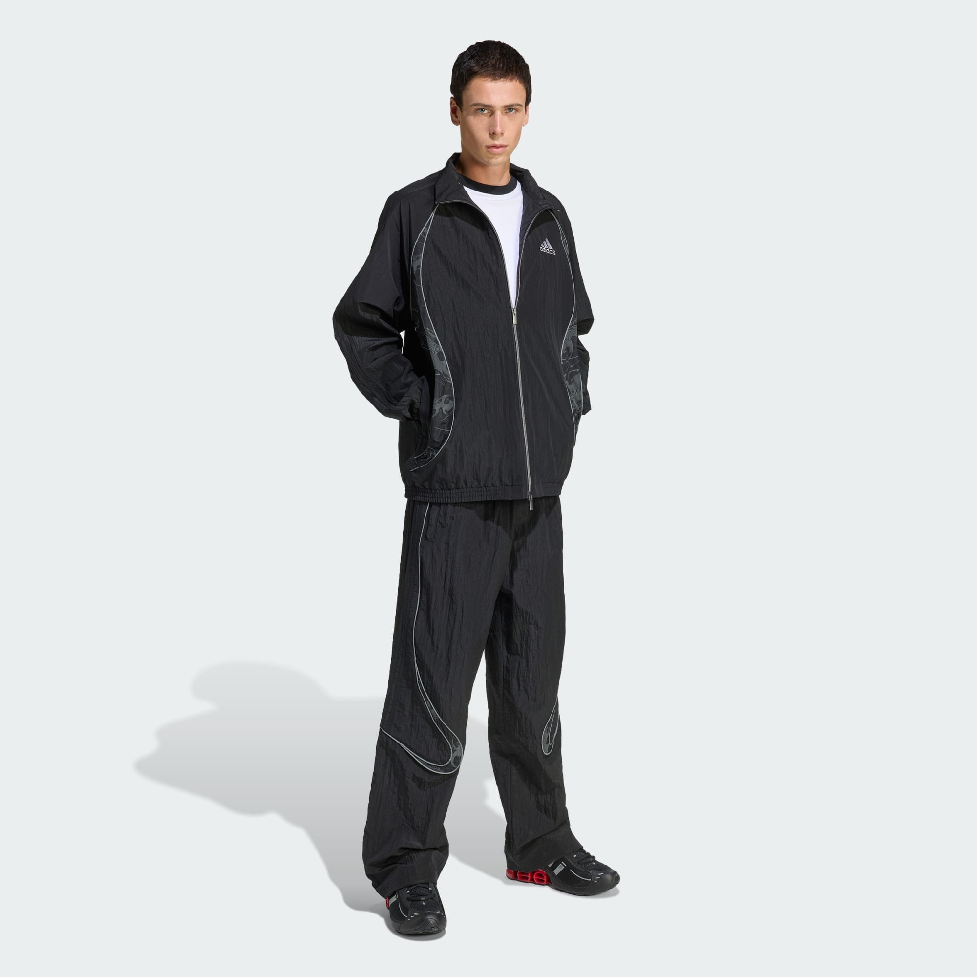 Top Adilenium Season 4 od adidas Originals čerpá z archivních modelů Teamgeist, kultovní fotbalové řady, která způsobila revoluci na hřišti. Má volný střih pro snadné vrstvení. Střihové linie Teamgeist vynikají díky reflexnímu lemování a vsazenými díly z kontrastních materiálů s reflexním, etnickým celoplošným potiskem.
