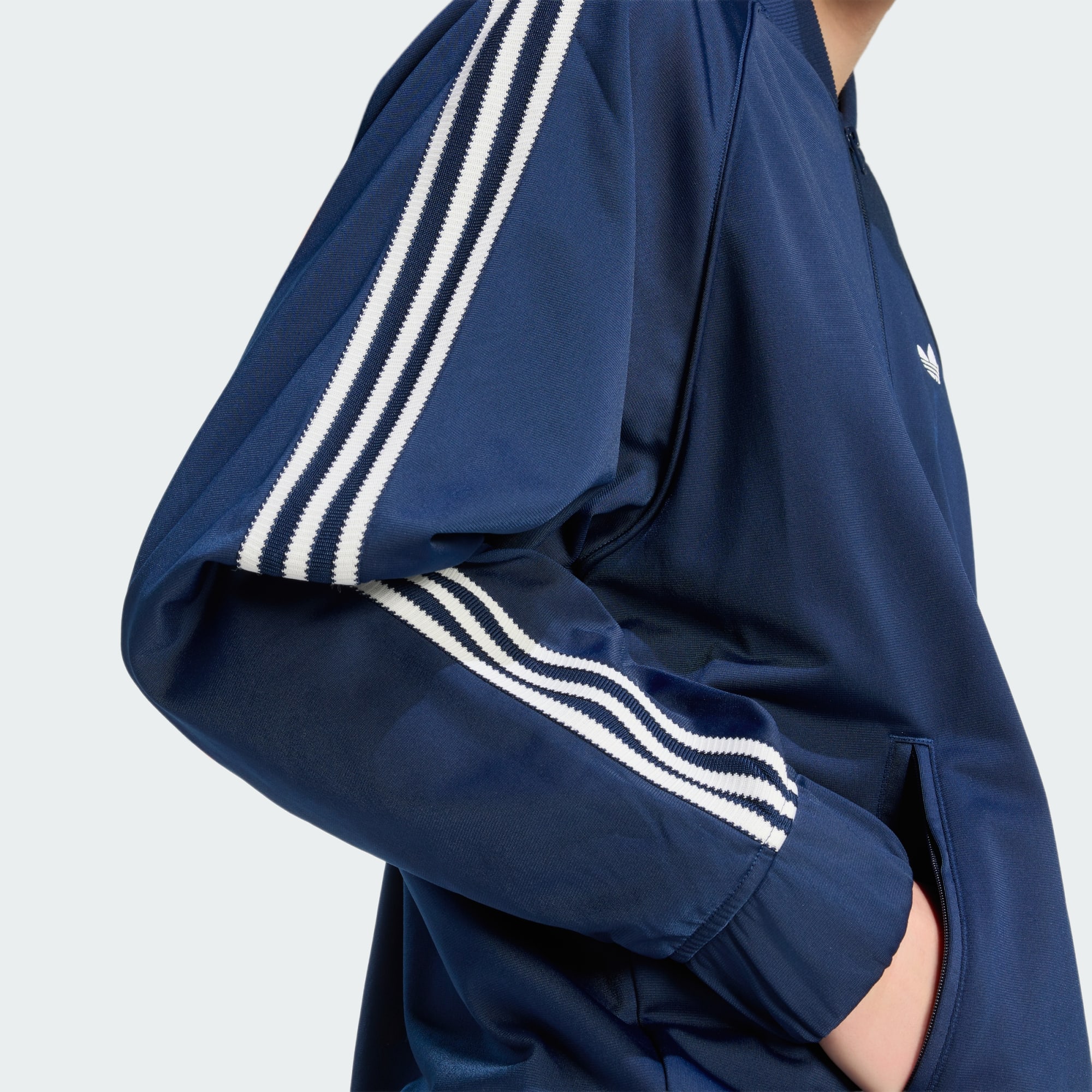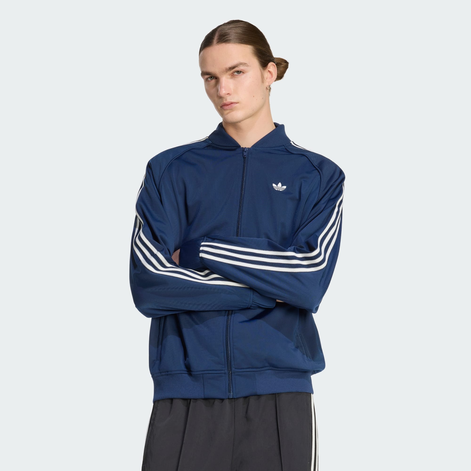 Díky oboustrannému zipu nabízí snadné vrstvení. Žakárová podšívka dodává topu luxusní nádech, zatímco ikonický detail límce spolu s klasickým označením trojlístku odkazuje na dědictví adidas.