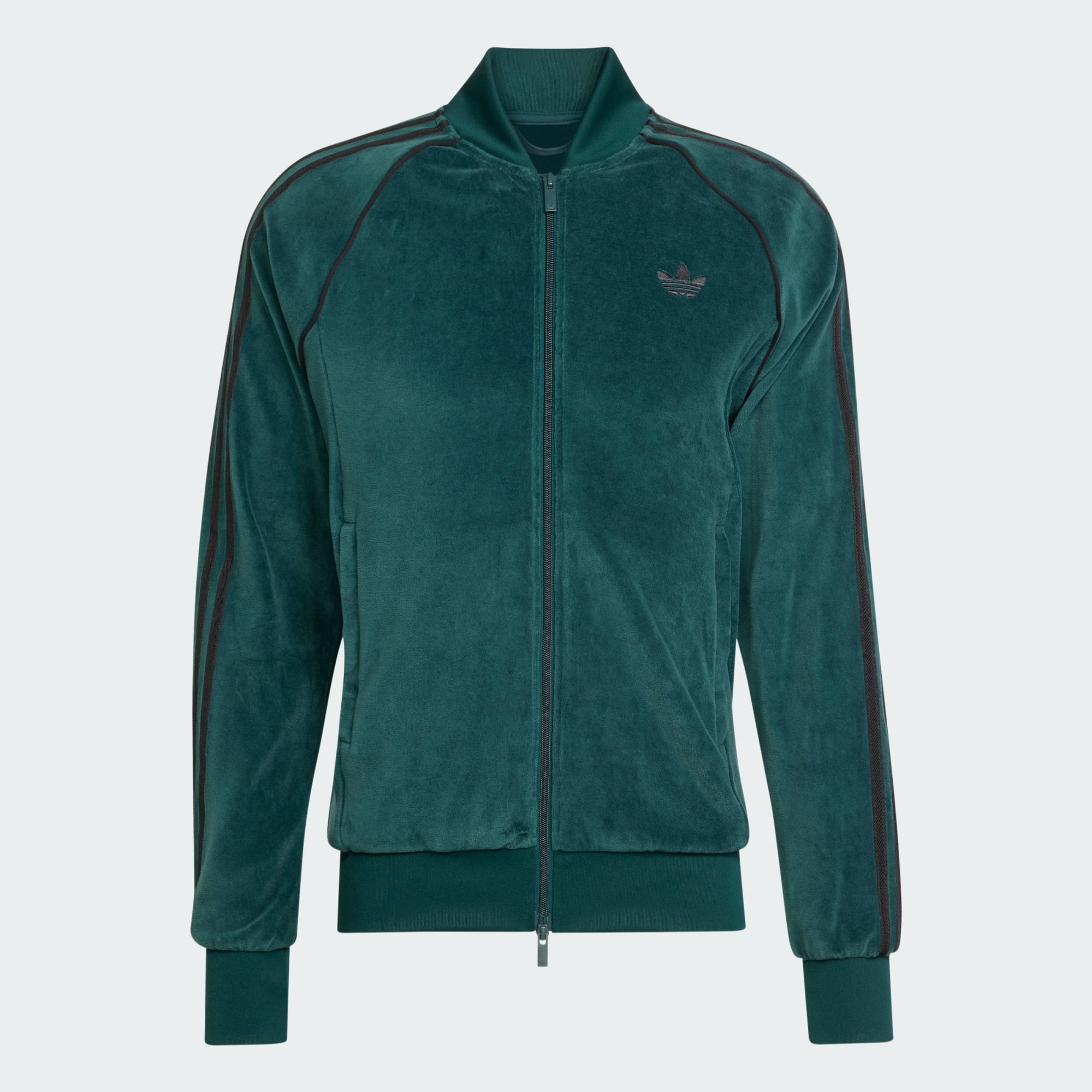 Ať už lenošíš doma nebo vyrážíš do města, tento sportovní top adidas tě podrží. Měkký velur mu dodává luxusní pocit. S vroubkovaným límcem a manžetami a přiléhavým střihem, který obepíná tělo, je navržen tak, aby byl stylový i pohodlný.
