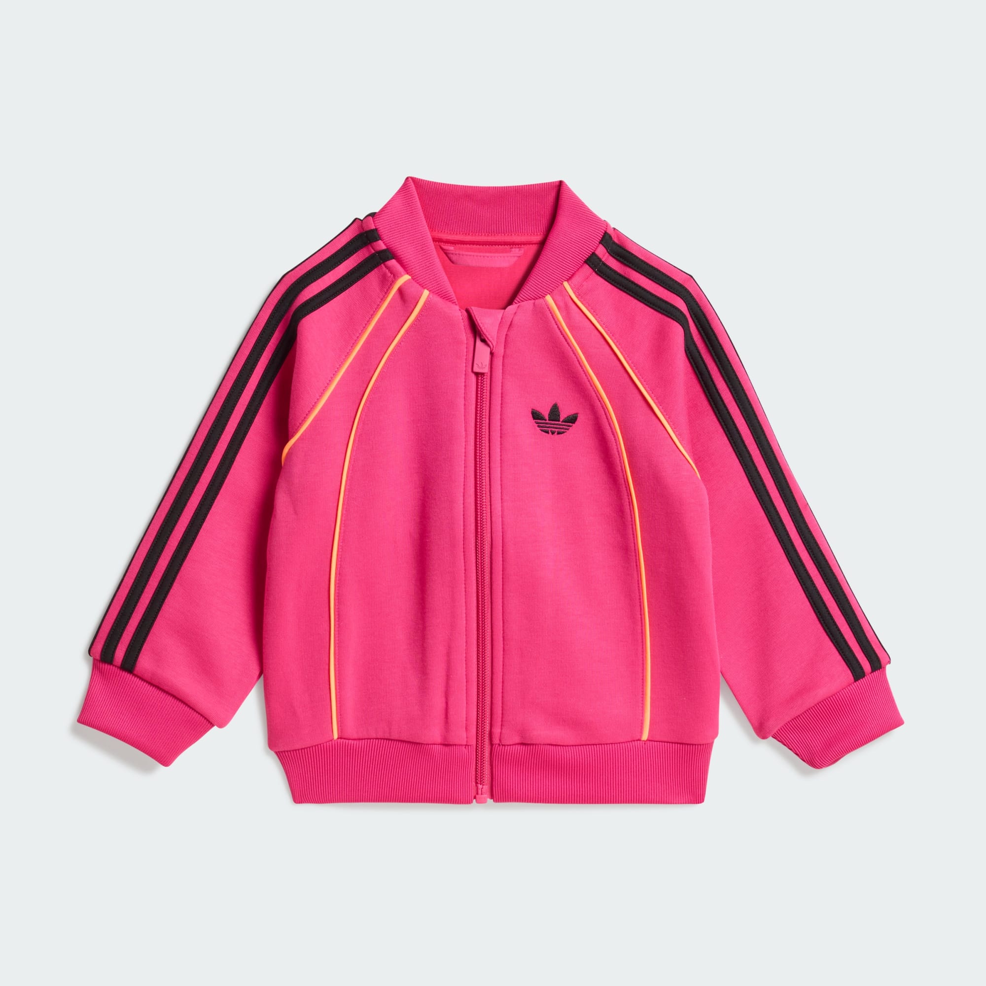 Tepláková souprava Spacer předvádí autenticitu DNA adidas a přepracovává decentní prvky z minulosti pro životní styl dneška. Tento kousek z kolekce Adicolor je poctou naší bohaté historii a spojuje v sobě ikonický branding se současným designem. Tepláková souprava s konstrukcí z distančního materiálu přináší vašemu dítěti teplo bez nadměrného objemu. Její rovný střih poskytuje pohodlí a prodyšnost, což dětem zároveň usnadňuje pohyb. Zapínání na zip umožňuje snadné oblékání. Vyšívané logo trojlístku dodává nádech klasického stylu adidas, zatímco zářivé barvy vnesou do šatníku hravou energii.
