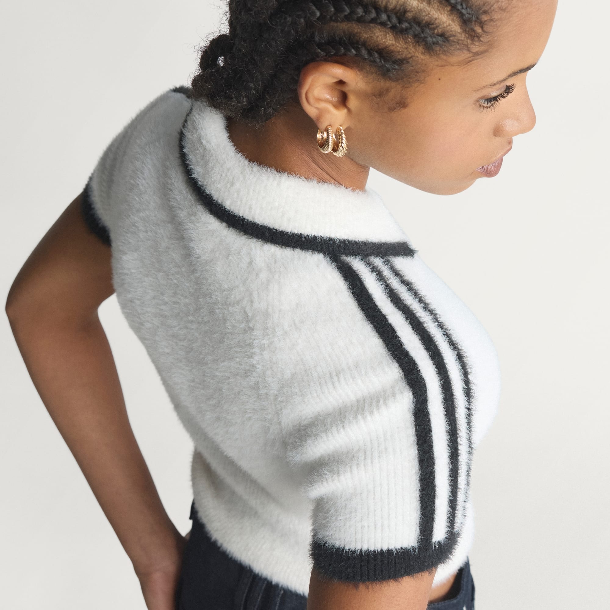 Přiléhavé tričko s vroubkovaným límcem pro stylový ležérní vzhled.