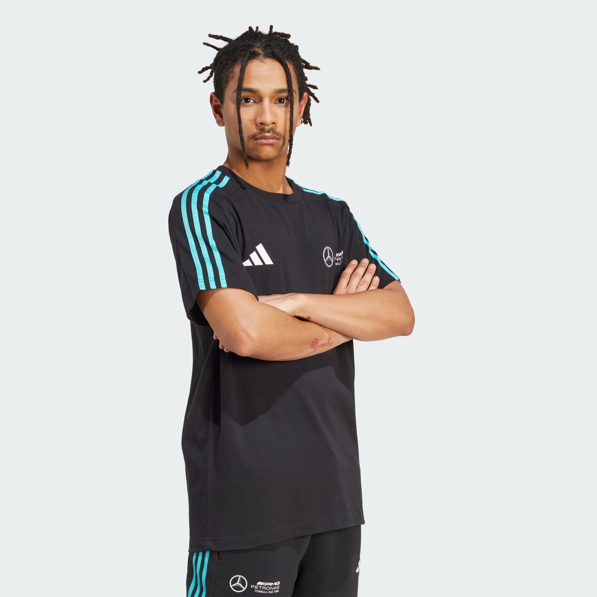 Vzdej hold závodnímu týmu Mercedes - AMG Petronas Formula One Team v tomto tričku od adidas Motorsports. Je vyrobené z pohodlné bavlny a má vroubkovaný výstřih, takže ti skvěle padne. Logo Mercedes - AMG Petronas Formula One Team na hrudi v kombinaci se 3 proužky na ramenou a logem se 3 proužky na hrudi ti dodají autentický vzhled.