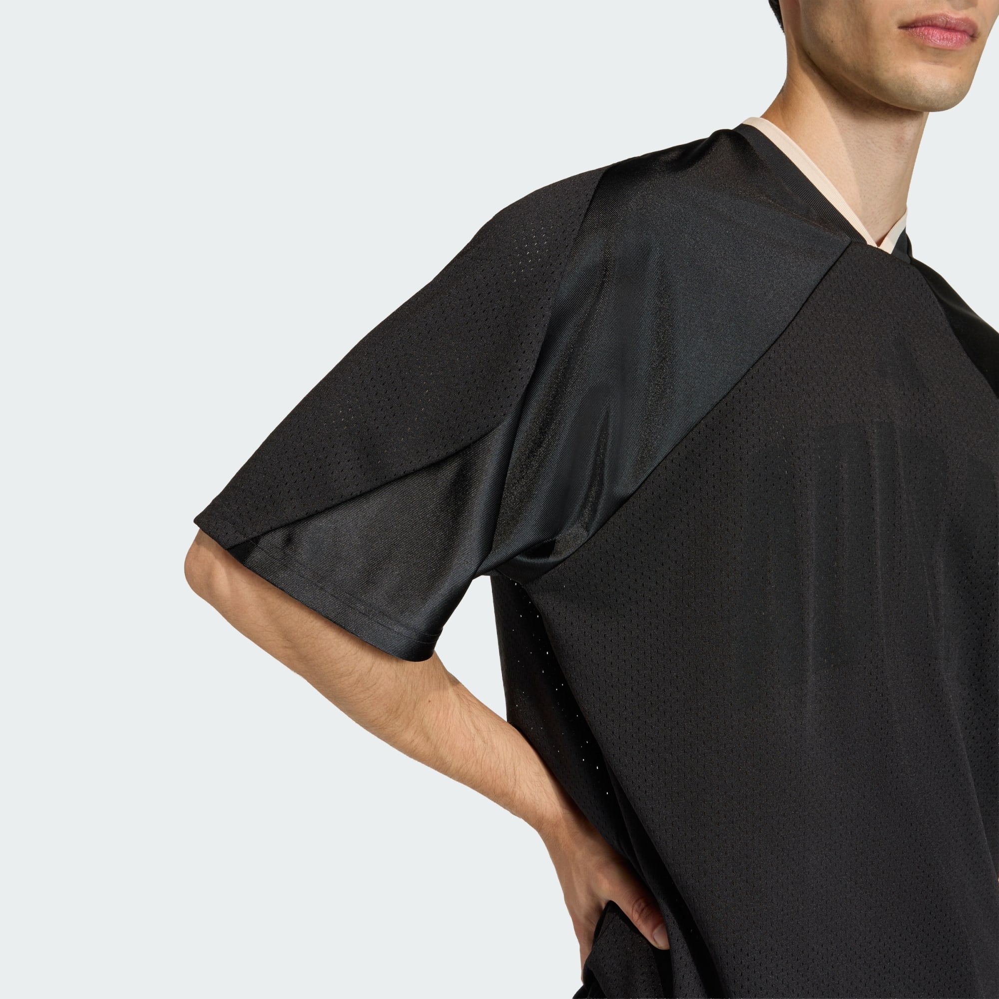 Nadrozměrné síťované tričko s vzhledem inspirovaným americkým sportovním stylem.