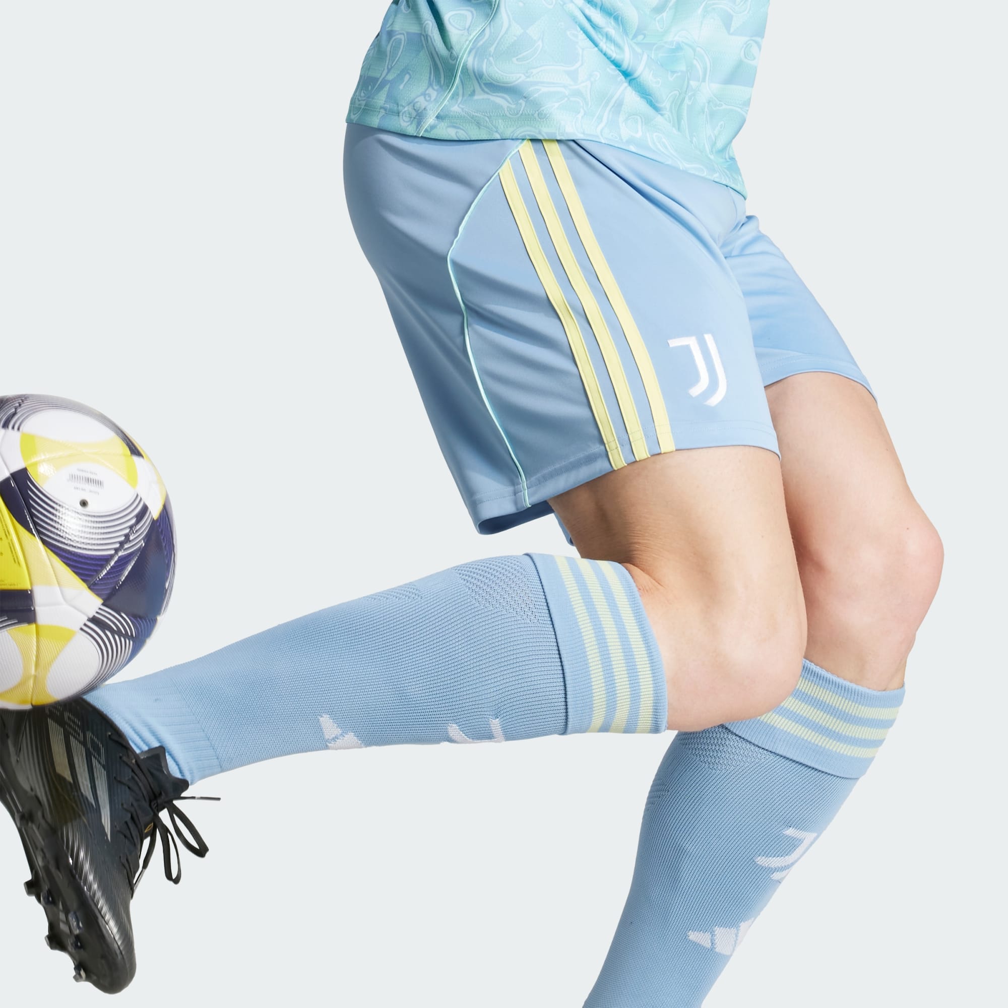 Odstartuj novou fotbalovou sezónu v bezstarostném letním duchu. Tyto šortky adidas Juventus v zářivě žluté a pastelově modré barvě venkovního dresu jsou navržené pro ležérní vzhled v den zápasu. Ať už nahráváš, nebo dáváš gól, savý materiál AEROREADY tě udrží v suchu.